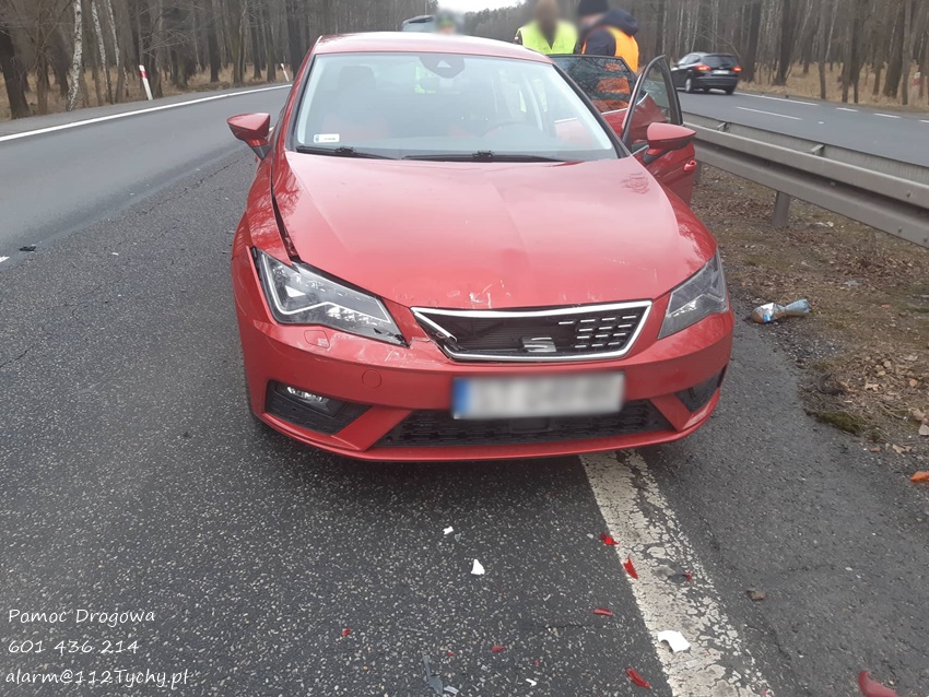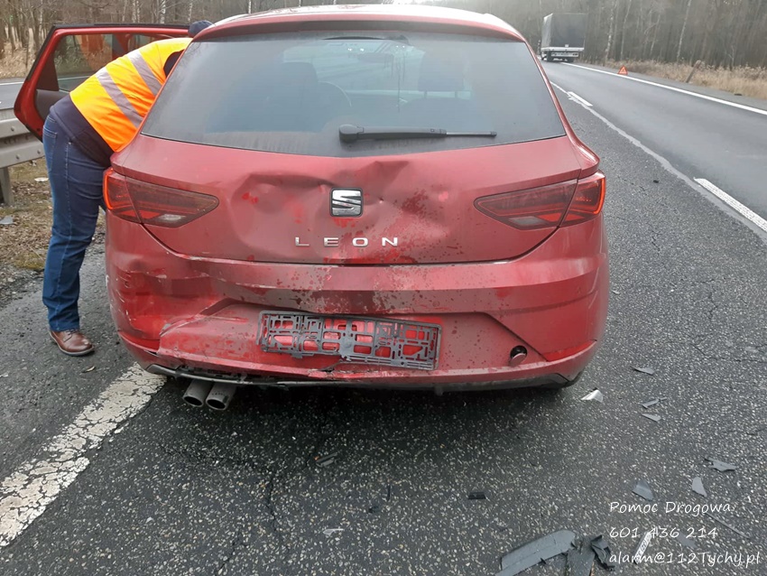 28 grudnia przed godziną 14 na trasie DK 86 około 300m przed stacja paliw Shell doszło do zdarzenia drogowego z udziałem trzech samochodów. Na miejsce zdarzenia zadysponowane zostały: ZRM, zastępy JRG Tychy (GBA, SCRt) oraz patrol Policji. Lewy pas w kierunku Pszczyny został zablokowany. Na szczęście uczestnicy zdarzenia nie doznali obrażeń. Z ustaleń pracujących na miejscu Policjantów wynika, że winną zdarzenia jest kobieta kierująca Fordem, która swoim samochodem uderzyła w tył Seat-a, który następnie uderzył w samochód dostawczy. Przez ponad godzinę występowały utrudnienia w ruchu. Policjanci KMP Tychy prowadzą dalsze postępowanie w sprawie tego zdarzenia.