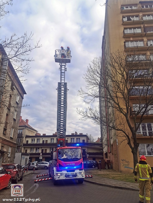 4 stycznia po godzinie 12 dyżurny KMP Tychy otrzymał zgłoszenie, że od dłuższego czasu rodzina nie ma kontaktu z członkiem rodziny, który zamieszkuje jedno z mieszkań na ostatniej kondygnacji w budynku wielorodzinnym przy al. Bielskiej 80 – 82. Na miejsce zgłoszenia zadysponowany został jeden z patroli prewencji. Przybyli na miejsce funkcjonariusze podjęli decyzję o konieczności wezwania na miejsce strażaków. Do działań zadysponowane zostały zastępy JRG Tychy (GBA, SCD – 40,3). Przybyli na miejsce strażacy, po sprawieniu drabiny mechanicznej przez okna sprawdzili mieszanie. Nikogo nie widzieli. Policjanci oraz będąca na miejscu rodzina zawnioskowali o otwarcie mieszkania. Strażacy przy użyciu ręcznej wyważarki otwarli mieszkanie. Po jego dokładnym sprawdzeniu nikogo nie znaleziono. Mieszkanie zostało przekazane pod opiekę rodziny.