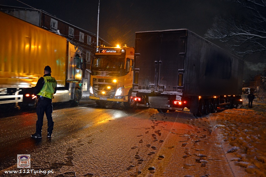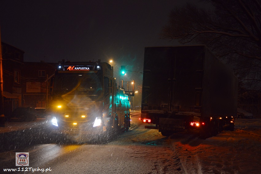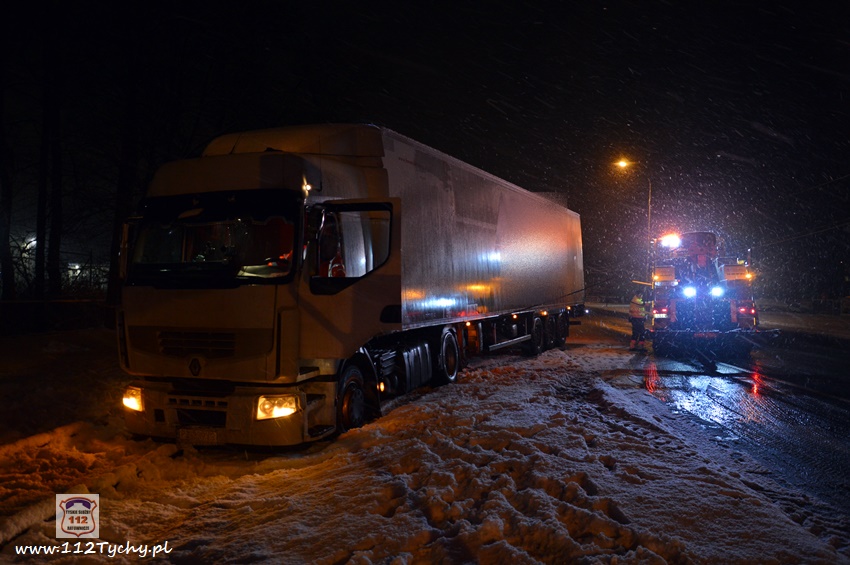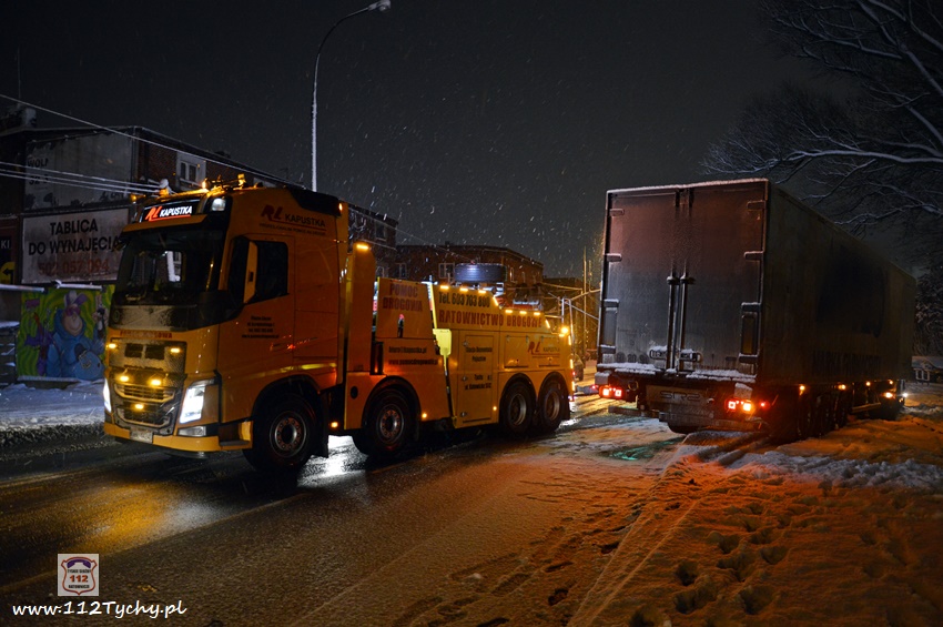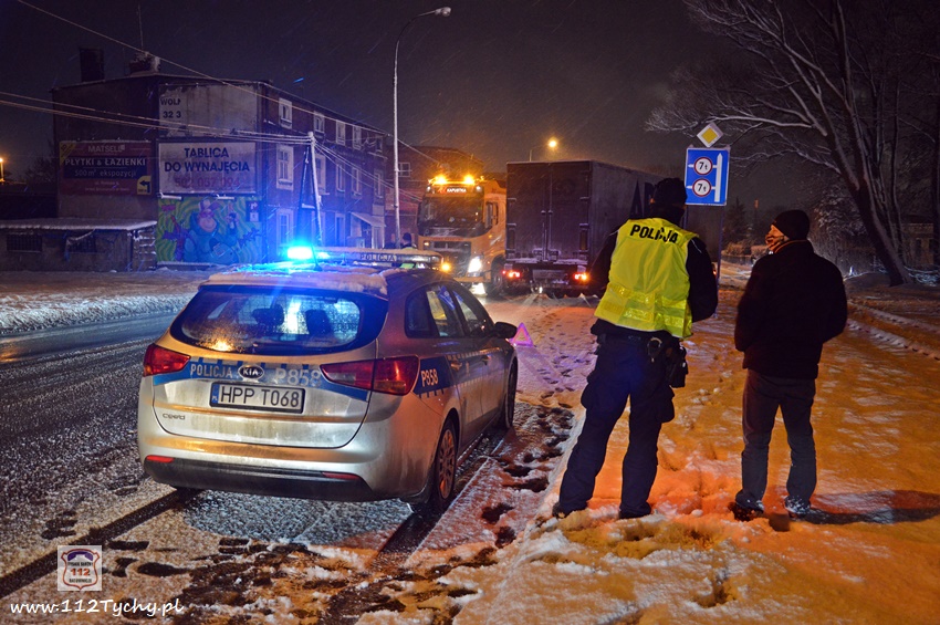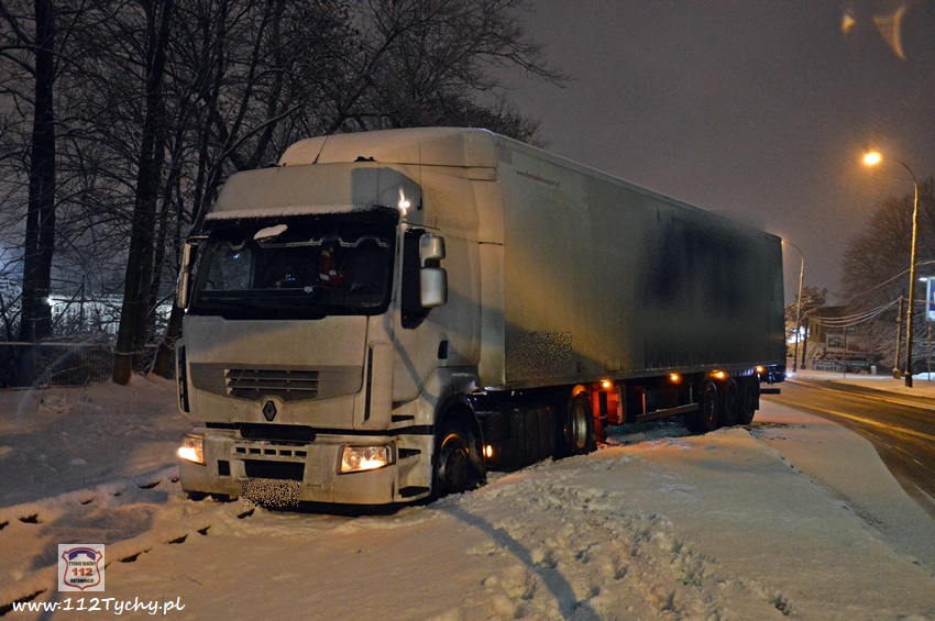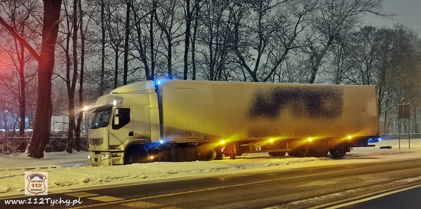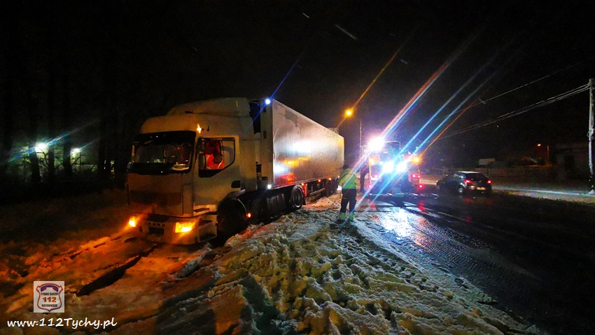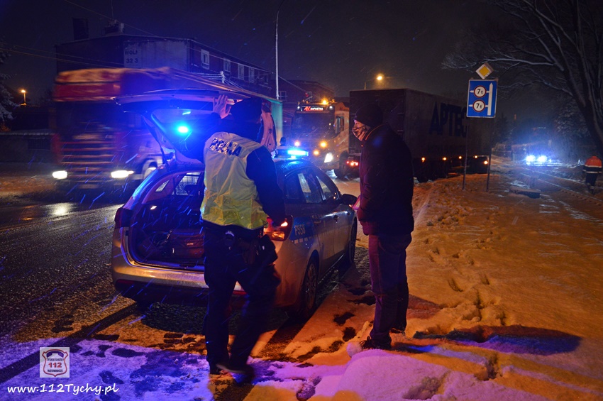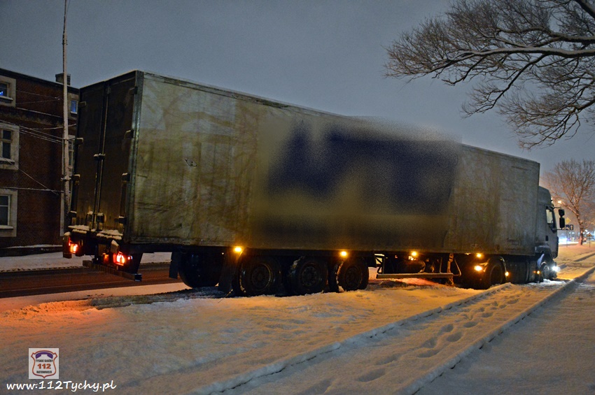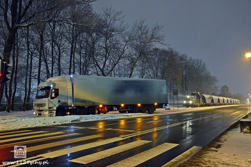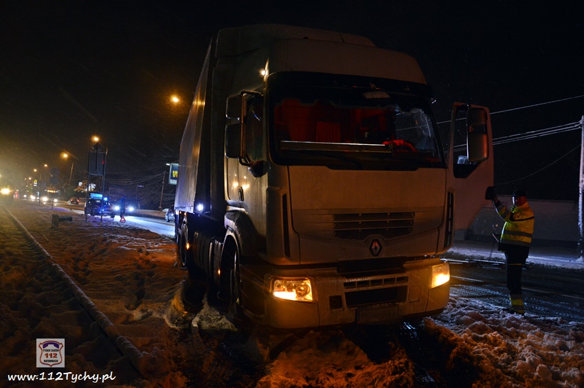 13 stycznia około godziny 18:30 na ul. Mikołowskiej w rejonie skrzyżowania z ul. Powstańców doszło do zdarzenia drogowego. Kierowca ciągnika siodłowego marki Renault z naczepą wypadł z drogi i zatrzymał się na torach kolejowych prowadzących do browaru. Z relacji kierowcy wynika, że wjechał on na tory chcąc uniknąć uderzenia w samochód osobowy, który zaczął hamować przed przejściem dla pieszych. Ciągnik siodłowy utknął na torowisku, a naczepa blokowała częściowo prawy pas ruchu. Kierowca samochodu powiadomił o zdarzeniu swojego przełożonego. Na miejsce zdarzenia wezwany został patrol Policji. Po około czterdziestu minutach na miejsce przyjechał ciężki holownik pomocy drogowej. Na czas wyciągania zestawu z potrzasku ruch w miejscu zdarzenia odbywał się wahadłowo (kierowany przez Policję). W 15 minut pojazd został uwolniony z potrzasku. Policjanci KMP Tychy prowadzą dalsze postępowanie w sprawie tego zdarzenia.