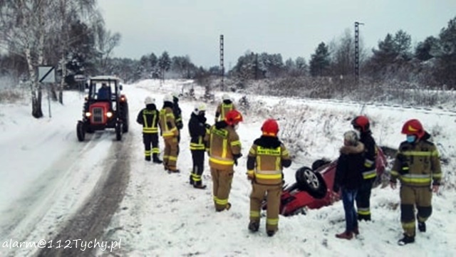 13 stycznia około godziny 15 dyżurni SK KM PSP Tychy i KPP Bieruń otrzymali zgłoszenie o dachowaniu osobówki na ul. Borowinowej w Bieruniu. Ze zgłoszenia wynikało, że w samochodzie ma być zakleszczony kierowca. Na miejsce zdarzenia zadysponowane zostały zastępy OSP Bieruń Stary (GBA), JRG Tychy (GBA, SCRt) oraz patrol Policji. Po dotarciu na miejsce zgłoszenie potwierdziło się. Na szczęście kierująca samochodem Mitsubishi kobieta opuściła go przed przyjazdem służb. Nie wymagała pomocy medycznej. Pracujący na miejscu Policjanci przeprowadzili badanie trzeźwości, wynik: 1,6mg/l co daje prawie 3,4 promila. Kobieta została zatrzymana. Bieruńscy Policjanci prowadzą dalsze postępowanie w tej sprawie.