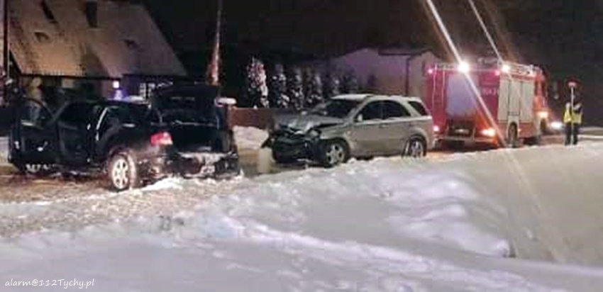 17 stycznia około godziny 18 na ul. Imielińskiej (DK 934) w Imielinie doszło do czołowego zderzenia dwóch samochodów osobowych. Na miejsce zdarzenia wezwane zostały służby ratunkowe. Na pomoc ruszyły zastępy OSP Imielin (GBA), JRG Tychy (GBA, SCRt), ZRM i patrole Policji. Na czas działań ratunkowych droga została całkowicie zablokowana. Po dotarciu służb na miejsce zgłoszenie zostało potwierdzone. W zdarzeniu brały udział Kia i Audi. W wyniku zderzenie pojazdów poszkodowane zostały dwie osoby podróżujące Audi. Zostały one przewiezione do szpital na dokładne badania. Ze wstępnych ustaleń pracujących na miejscu Policjantów wynika, że winnym zdarzenia jest kierowca (26 lat) samochodu KIA, który z niewyjaśnionych przyczyn zjechał na przeciwległy pas i doprowadził do zderzenia z Audi za kierownicą którego siedział młody mężczyzna (21 lat). Policjanci przeprowadzili na miejscu badanie trzeźwości, obaj kierowcy byli trzeźwi. Jednakże zachowanie kierowcy KIA spowodowało, ze Policjanci podjęli decyzję o konieczności jego przebadania na obecność narkotyków lub innych środków odurzających. Mężczyzna został przetransportowany do KPP Bieruń gdzie został poddany badaniu. Wynik okazał się pozytywny. Została mu pobrana krew do badań. Policjanci zatrzymali mu prawo jazdy. Działania służb na miejscu zdarzenia trwały blisko dwie i pół godziny. Policjanci KPP Bieruń prowadzą dalsze postępowanie w sprawie tego zdarzenia.