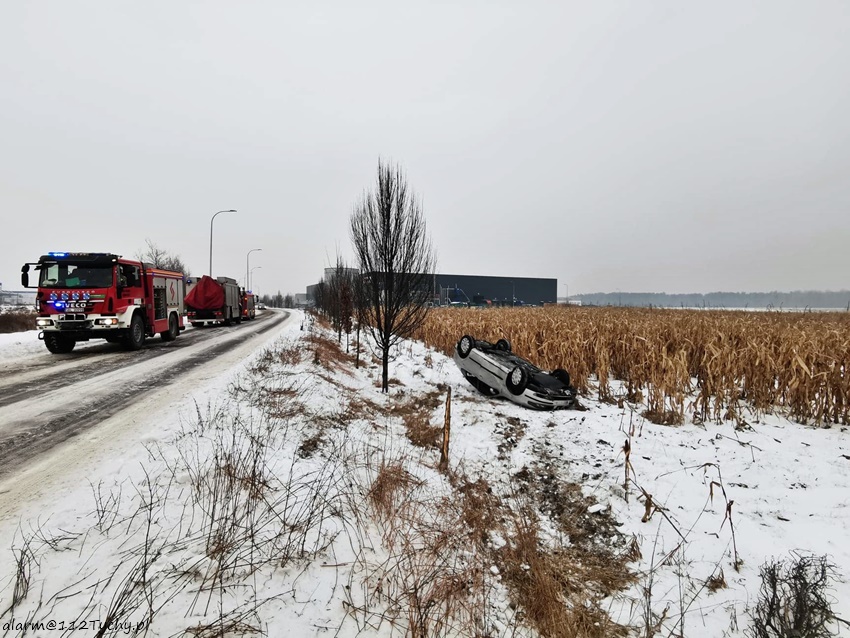9 lutego około godziny 14:50 dyżurny SK KM PSP Tychy otrzymał zgłoszenie o dachowaniu samochodu osobowego na ul. Ekonomicznej w Bieruniu. Na miejsce zgłoszeni zadysponowane zostały zastępy OSP Bieruń Stary (GBA), JRG Tychy (GBA, SCRt) oraz patrol Policji. Po dotarciu na miejsce zgłoszenie potwierdziło się. Na prostym odcinku drogi kierowca osobowego Seata utracił panowanie nad swoim pojazdem i wjechał do rowu dachując. Na szczęście kierowca nie doznał obrażeń i nie wymagał pomocy medycznej. Najprawdopodobniej przyczyną zdarzenia było niedostosowanie prędkości do warunków drogowych. Kierowca samochodu został ukarany mandatem karnym.