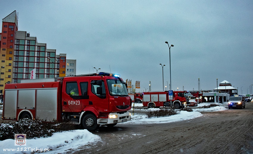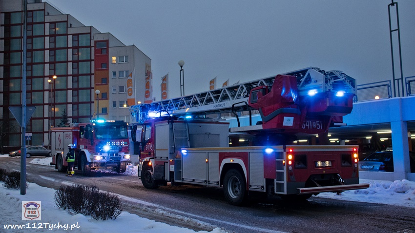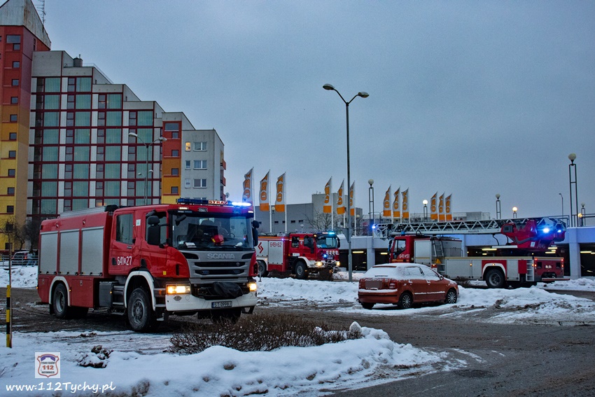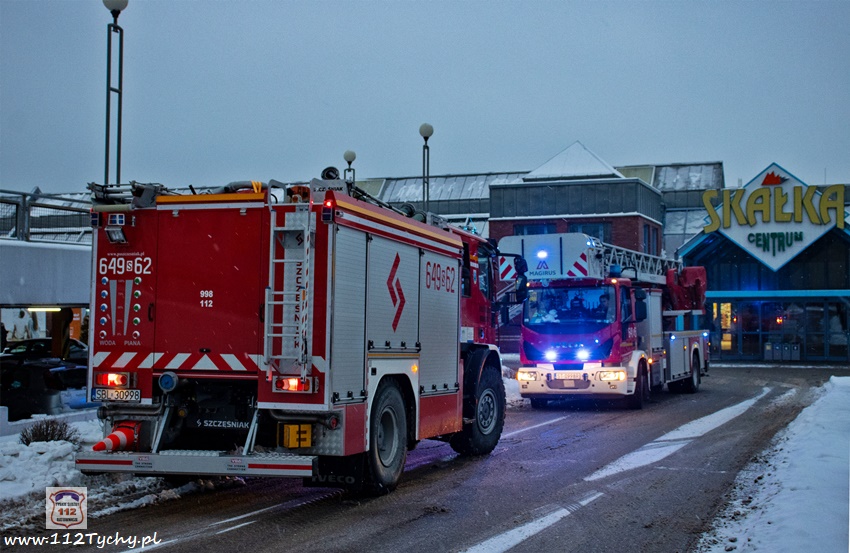 13 lutego około godziny 16:25 dyżurny SK KM PSP Tychy otrzymał zgłoszenie o zagrożeniu pożarowym na terenie CH Skałka przy al. Bielskiej. Na miejsce natychmiast zadysponowane zostały zastępy JRG Tychy (GBA, GCBARt, SCD – 40,3), OSP Bieruń Stary (GBA). Do działań włączył się również mający posterunek przy CH Skałka patrol Straży Miejskiej. Z budynku ewakuowani zostali klienci oraz pracownicy. Przybyli na miejsce strażacy dokonali rozpoznania i sprawdzenia budynku. Nie znaleziono źródła pożaru. Najprawdopodobniej doszło do awarii jednej z czujek systemu ppoż. na terenie obiektu. Po około godzinie działania zostały zakończone i obiekt został ponownie otwarty.