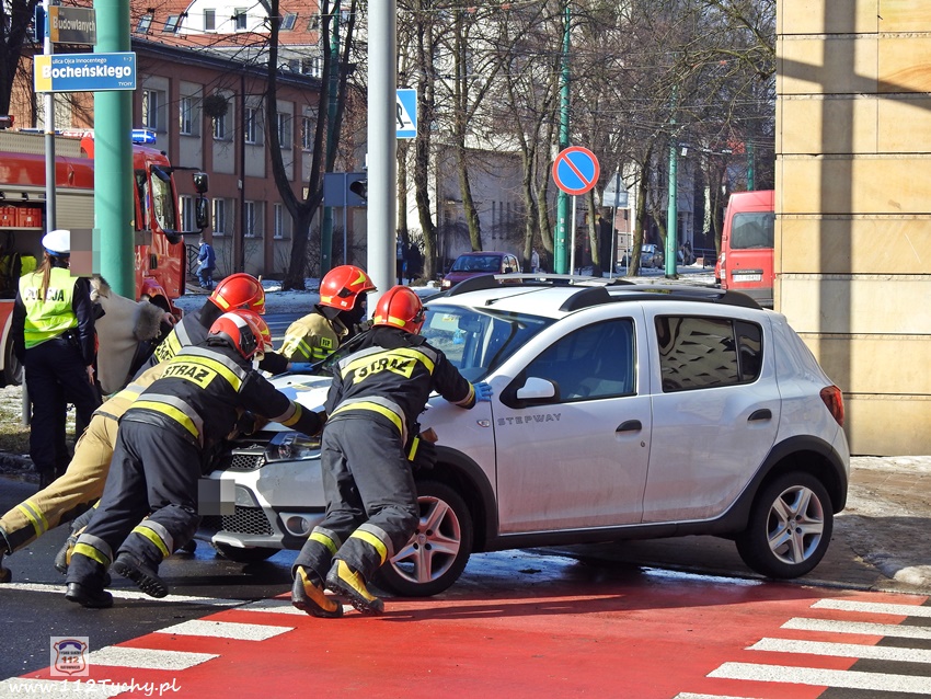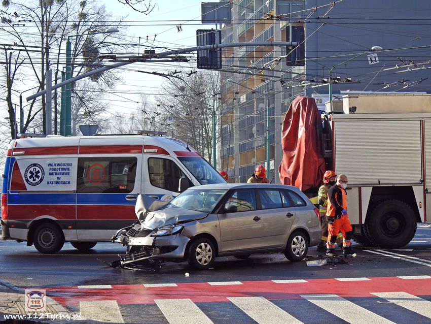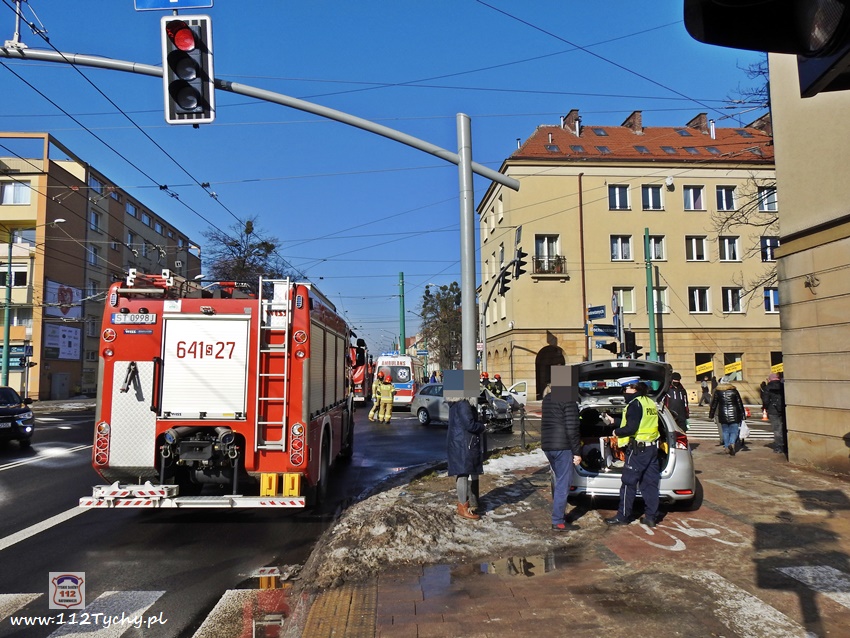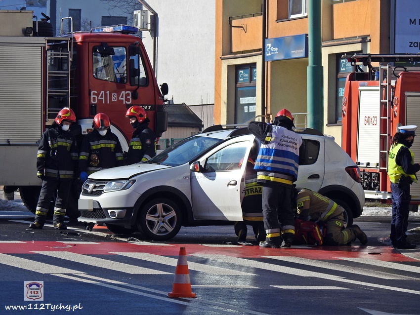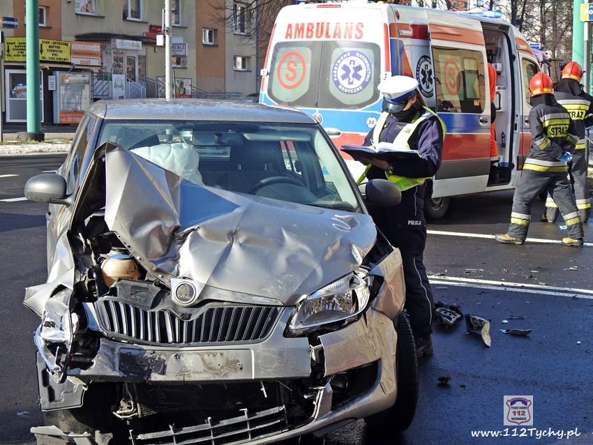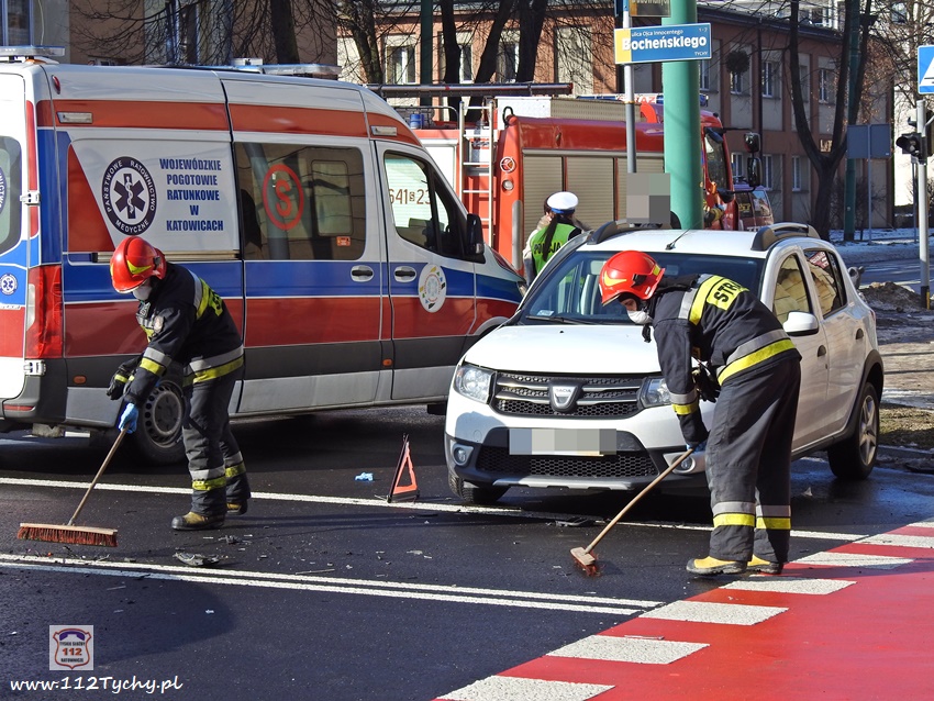 20 lutego około godziny 9:40 na skrzyżowaniu ul. Begonii – Budowlanych – Bocheńskiego doszło do zdarzenia drogowego z udziałem dwóch samochodów osobowych. W zdarzeniu brały udział Dacia i Skoda. Na miejsce zdarzenia zadysponowane zostały zastępy JRG Tychy (GBA, GCBARt, SCRt) , ZRM i patrol Policji. Uczestnicy zdarzenia trafili pod opiekę strażaków, a następnie ratowników medycznych. Rozbite pojazdy zablokowały całkowicie ul. Bocheńskiego przy skrzyżowaniu z ul. Budowlanych. Z ustaleń pracujących na miejscu Policjantów jak i relacji świadków i uczestników zdarzenia wynika, ze winnym spowodowania zdarzenia drogowego jest kierowca samochodu Dacia, który sugerując się „zieloną” strzałka na sygnalizatorze wjechał na skrzyżowanie od ul. Begonii doprowadzając do zderzenia ze Skodą, która poruszała się w kierunku dworca PKP ul. Budowlanych. Utrudnienia w ruchu trwały około godziny. Policjanci KMP Tychy prowadzą dalsze postępowanie w sprawie tego zdarzenia.