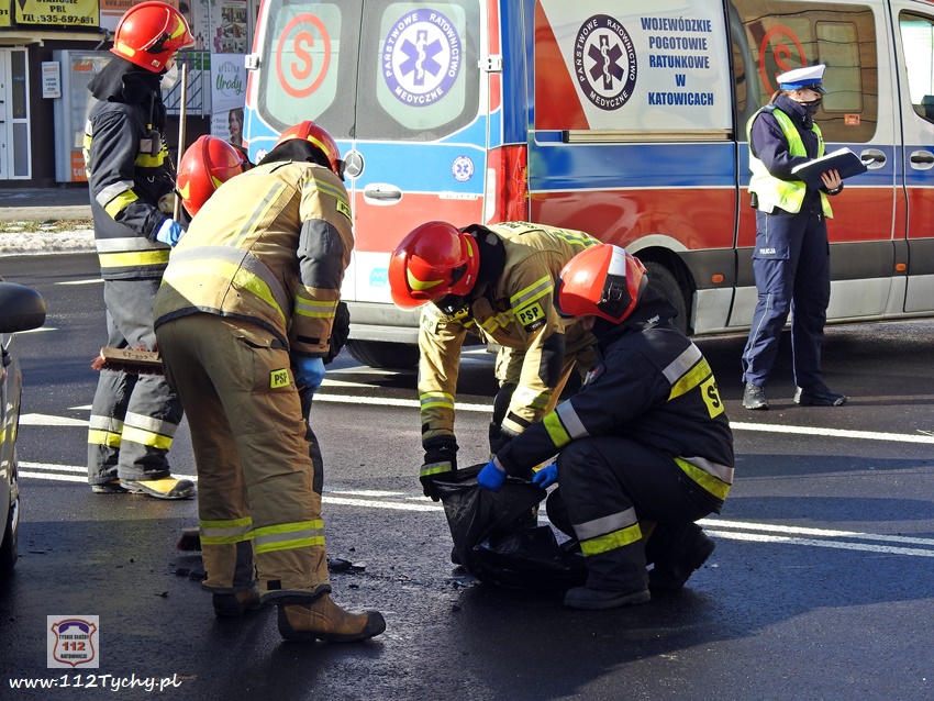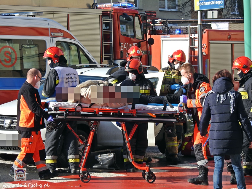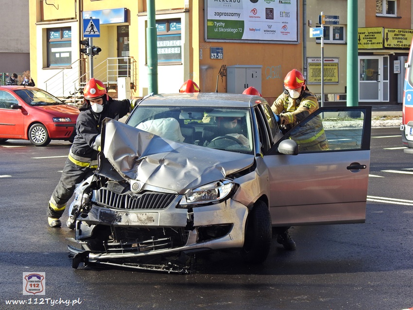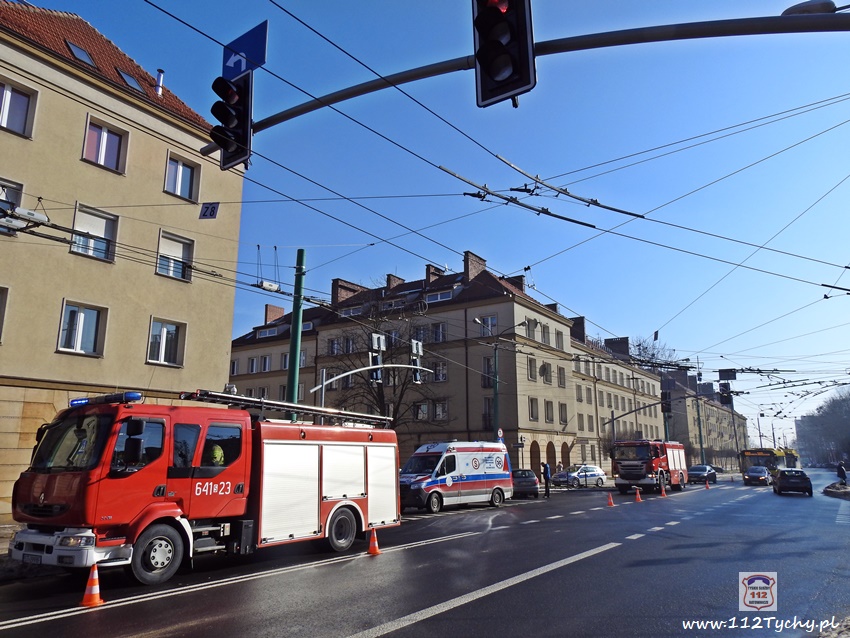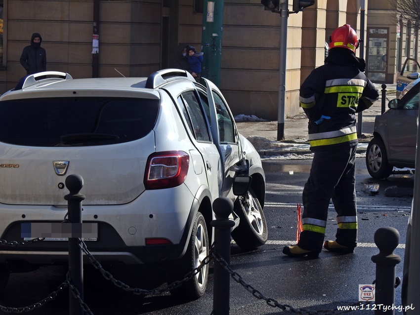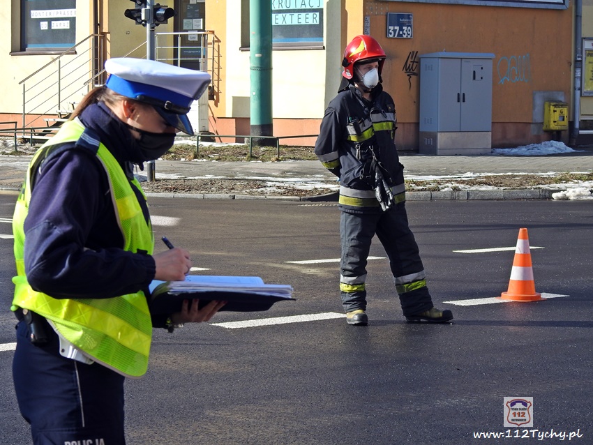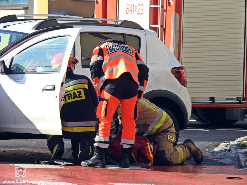 20 lutego około godziny 9:40 na skrzyżowaniu ul. Begonii – Budowlanych – Bocheńskiego doszło do zdarzenia drogowego z udziałem dwóch samochodów osobowych. W zdarzeniu brały udział Dacia i Skoda. Na miejsce zdarzenia zadysponowane zostały zastępy JRG Tychy (GBA, GCBARt, SCRt) , ZRM i patrol Policji. Uczestnicy zdarzenia trafili pod opiekę strażaków, a następnie ratowników medycznych. Rozbite pojazdy zablokowały całkowicie ul. Bocheńskiego przy skrzyżowaniu z ul. Budowlanych. Z ustaleń pracujących na miejscu Policjantów jak i relacji świadków i uczestników zdarzenia wynika, ze winnym spowodowania zdarzenia drogowego jest kierowca samochodu Dacia, który sugerując się „zieloną” strzałka na sygnalizatorze wjechał na skrzyżowanie od ul. Begonii doprowadzając do zderzenia ze Skodą, która poruszała się w kierunku dworca PKP ul. Budowlanych. Utrudnienia w ruchu trwały około godziny. Policjanci KMP Tychy prowadzą dalsze postępowanie w sprawie tego zdarzenia.