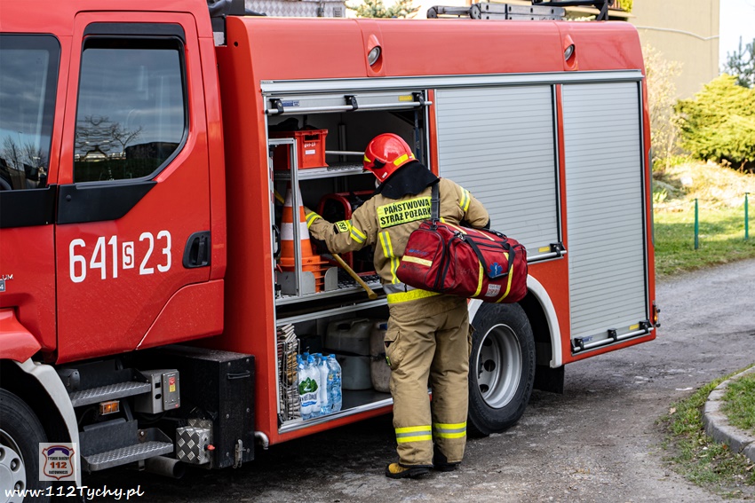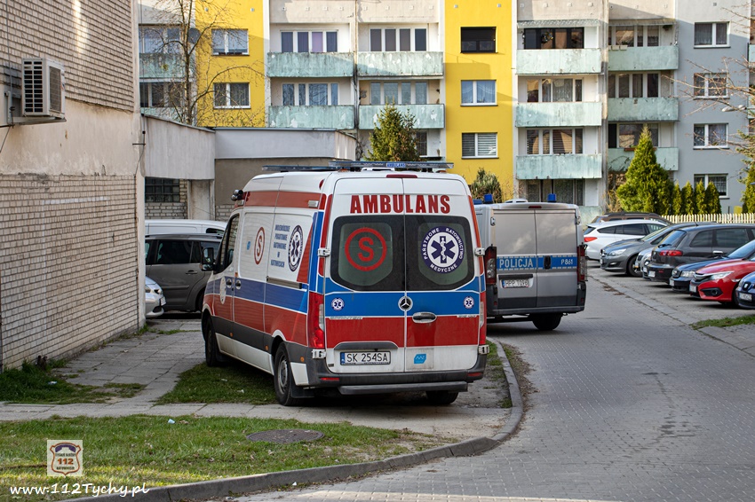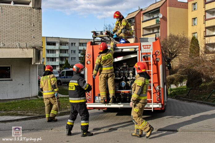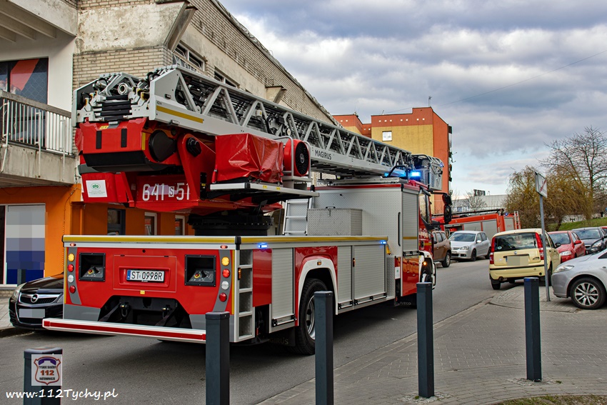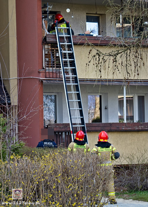 4 kwietnia około godziny 17 dyżurny SK KM PSP Tychy otrzymał zgłoszenie, że w jednym z mieszkań w budynku wielorodzinnym przy ul. Konecznego znajduje się osoba potrzebująca pomocy. Ze zgłoszenia wynikało, że na miejsce udaje się już naziemny ZRM i patrol Policji. Dyżurny SK KM PSP Tychy do działań zadysponował dwa zastępy JRG Tychy (GBA, SCD – 40,3). Po dotarciu na miejsce okazało się, że nie ma możliwości sprawienia drabiny mechanicznej. Strażacy weszli na balon przy użyciu drabiny ratowniczej. Po wejściu do mieszkania, otworzyli drzwi wejściowe i lokator trafił pod opiekę ratowników medycznych. Po około godzinie działania na miejscu zostały zakończone.