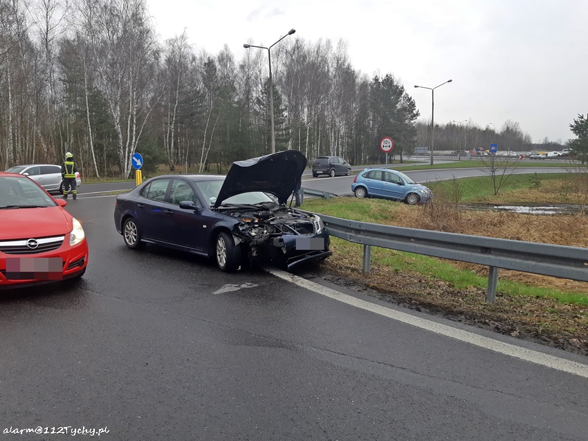 14 kwietnia około godziny 16:40 dyżurny SK KM PSP Tychy otrzymał zgłoszenie o zderzeniu dwóch samochodów osobowych na zjeździe z trasy S1 na ul. Hołdunowską w Lędzinach. Na miejsce zadysponowane zostały zastępy OSP Lędziny (GBA) – przedysponowany z zabezpieczania lądowiska dla śmigłowca LPR, JRG Tychy (GBAPr, SCRt), a także patrol Policji. Po dotarciu na miejsce zgłoszenie zostało potwierdzone. Działania na miejscu prowadzili już ratownicy medyczni z naziemnego ZRM. Jak się okazało, do zdarzenia doszło gdy kierowca Fiata zatrzymał się chcąc ustąpić pierwszeństwa przejazdu jadącej w trybie alarmowym karetce pogotowia (wezwanej do pacjenta z udarem – gdzie interweniował również śmigłowiec LPR). W tył hamującego Fiata uderzył Saab. Na szczęście osobom podróżującym pojazdami nic się nie stało. Po około godzinie pojazdy zostały odholowane. Bieruńscy Policjanci prowadzą dalsze czynności w sprawie tego zdarzenia.