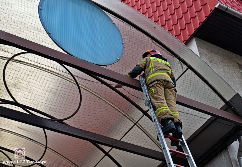 19 kwietnia o godzinie 18:50 dyżurny SK KM PSP Tychy otrzymał zgłoszenie o uwięzionym gołębiu w siatce ochronnej przy budynku wielorodzinnym przy ul. Kochanowskiego. Na miejsce zgłoszenia zadysponowany został zastęp JRG Tychy (GBAPr). Po dotarciu na miejsce i rozpoznaniu sytuacji zgłoszenie zostało potwierdzone. Po sprawieniu drabiny ratowniczej strażak po wejściu na nią odchylił siatkę ochronną co pozwoliło ptakowi wydostać się na wolność. Po około dwudziestu minutach działania na miejscu zostały zakończone.