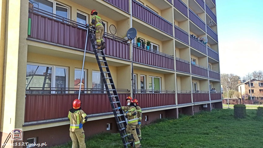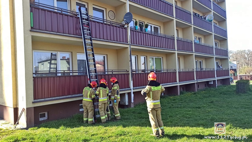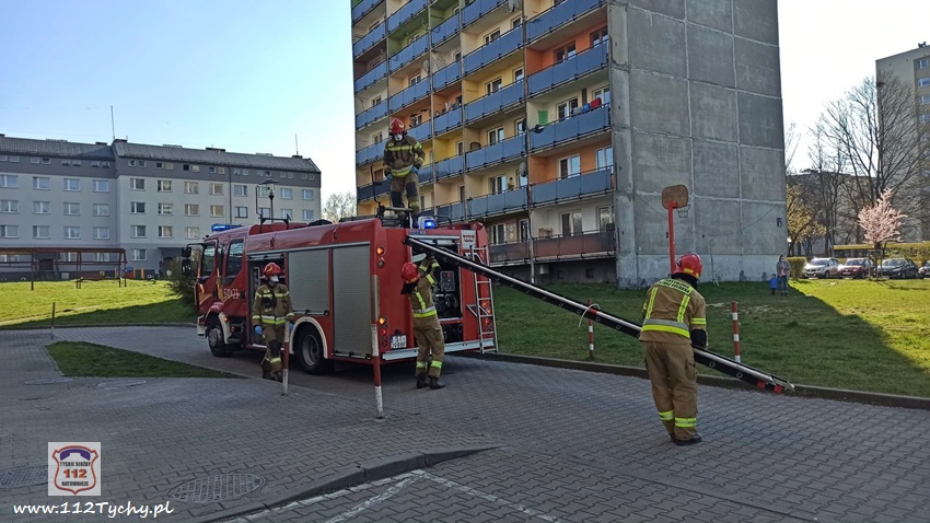 27 kwietnia o godzinie 16:17 dyżurny SK KM PSP Tychy otrzymał zgłoszenie, że w jednym z mieszkań w budynku wielorodzinnym przy ul. Starokościelnej może znajdować się osoba potrzebująca pomocy. Na miejsce zgłoszenia zadysponowany został zastęp JRG Tychy (GBA). Po dotarciu na miejsce okazało się, że matka nie może dostać się do mieszkania, w którym ma znajdować się dziecko (11 lat). Przy użyciu drabiny przystawnej strażacy dostali się na balkon mieszkania, a następnie przez okno weszli do mieszkania. Wewnątrz mieszkania zastali śpiące dziecko. Strażacy otworzyli drzwi i przekazali dziecko pod opiekę matki. Po kilkunastu minutach działania zostały zakończone.