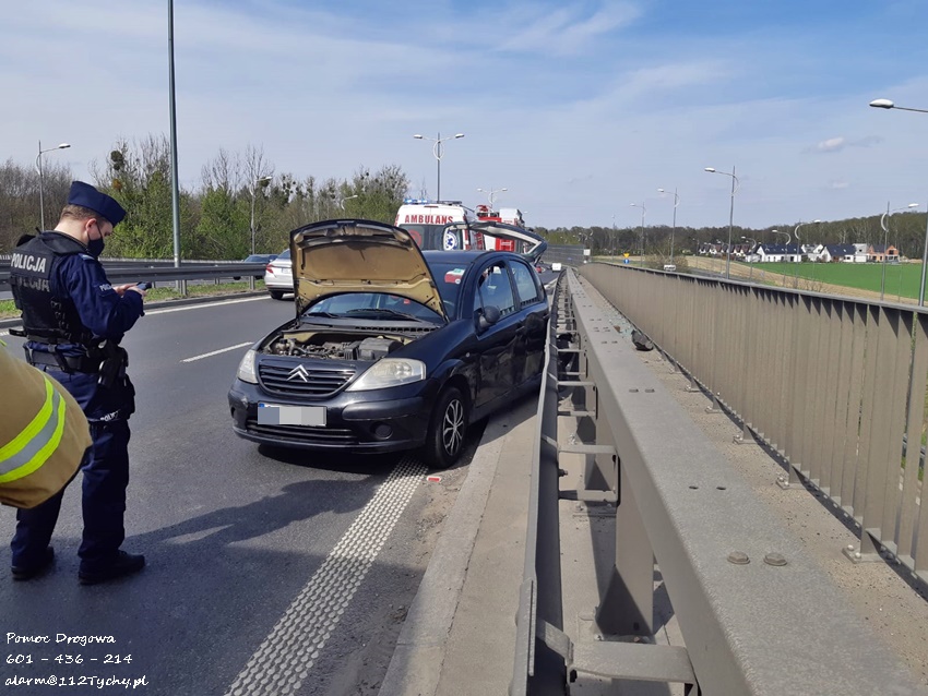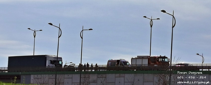 4 maja przed godziną 15 na ul. Beskidzkiej (DK 1) w kierunku Katowic, nad skrzyżowaniem z al. Niepodległości doszło do zdarzenia drogowego z udziałem samochodu osobowego Citroen i ciągnika siodłowego Scania z naczepą. Na miejsce zdarzenia zadysponowane zostały służby ratunkowe: ZRM, zastępy JRG Tychy (GBA, GCBARt, SCRt) oraz patrole Policji. Na czas działań prawy pas w kierunku Katowic został wyłączony z ruchu. W zdarzeniu ucierpiały dwie kobiety podróżujące osobówką. Zostały one przetransportowane do szpitali celem dokładnej diagnostyki. Ze wstępnych ustaleń pracujących na miejscu Policjantów wynika, ze winnym zdarzenia jest kierowca ciągnika siodłowego, który przy zmianie pasa z lewego na prawy nie zachował należytej ostrożności (osobówka w martwym polu) i uderzył w osobówkę. Działania służb na miejscu trwały ponad godzinę. Policjanci KMP Tychy prowadzą dalsze postępowanie w sprawie tego zdarzenia.