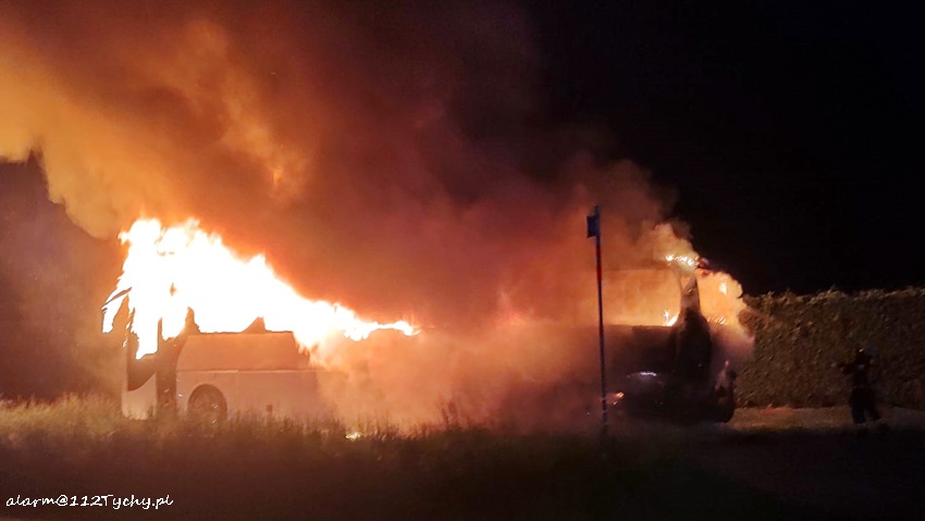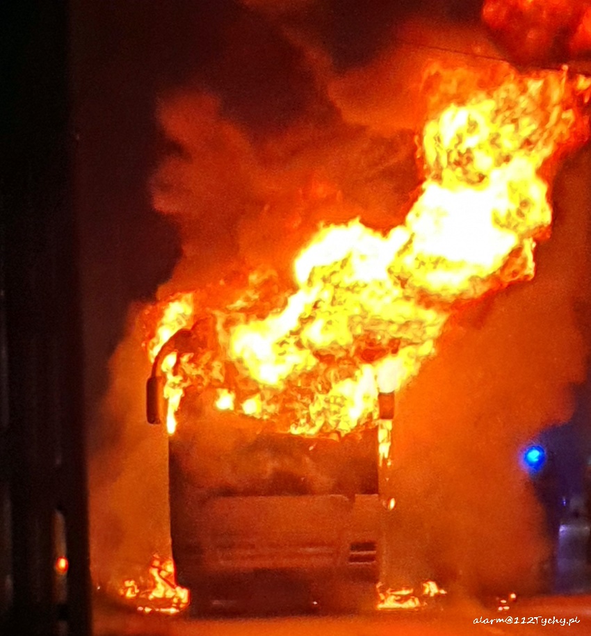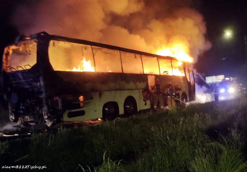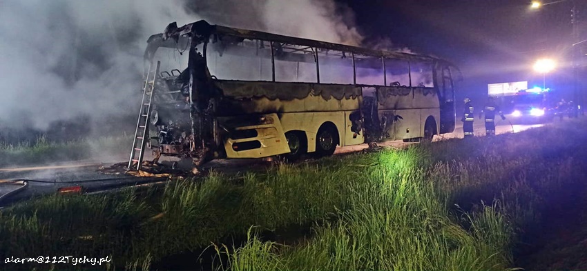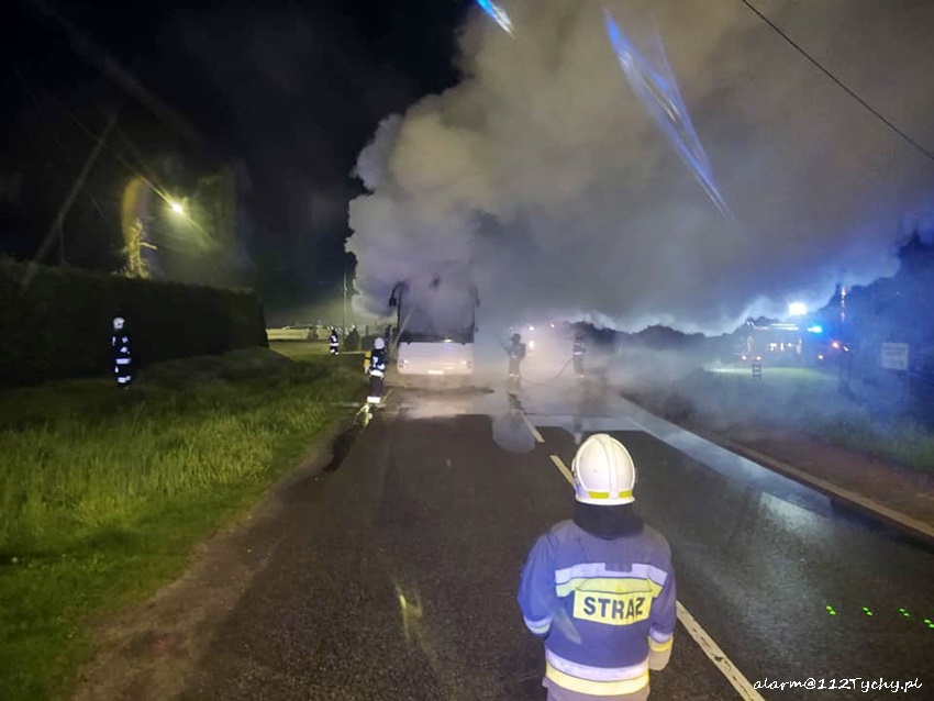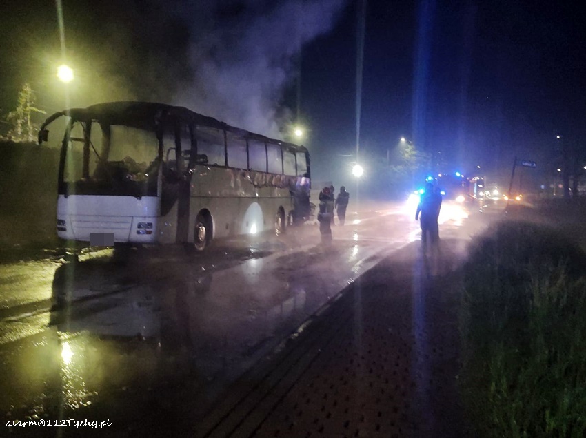 23 maja po godzinie 23:30 dyżurny SK KM PSP Tychy otrzymał zgłoszenie o pożarze autokaru turystycznego na ul. Imielińskiej w Imielinie. Na miejsce zgłoszenia natychmiast zadysponowane zostały zastępy OSP Imielin (GLBMRt), JRG Tychy (GBA, GCBARt), OSP Chełm Śląski (GBA) oraz patrol Policji. Ze zgłoszenia wynikało, że autokarem podróżował sam kierowca i podjął akcję gaśniczą, która okazała się bezskuteczna. Na czas działań gaśniczych ruch na ul. Imielińskiej był zablokowany. Przybyli na miejsce strażacy dość szybko opanowali sytuację. Po około dwóch godzinach wrak autokaru został odholowany. Trwa ustalanie przyczyn i okoliczności pożaru.