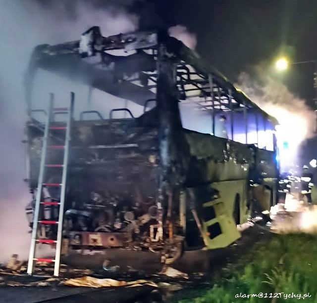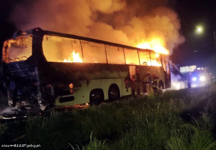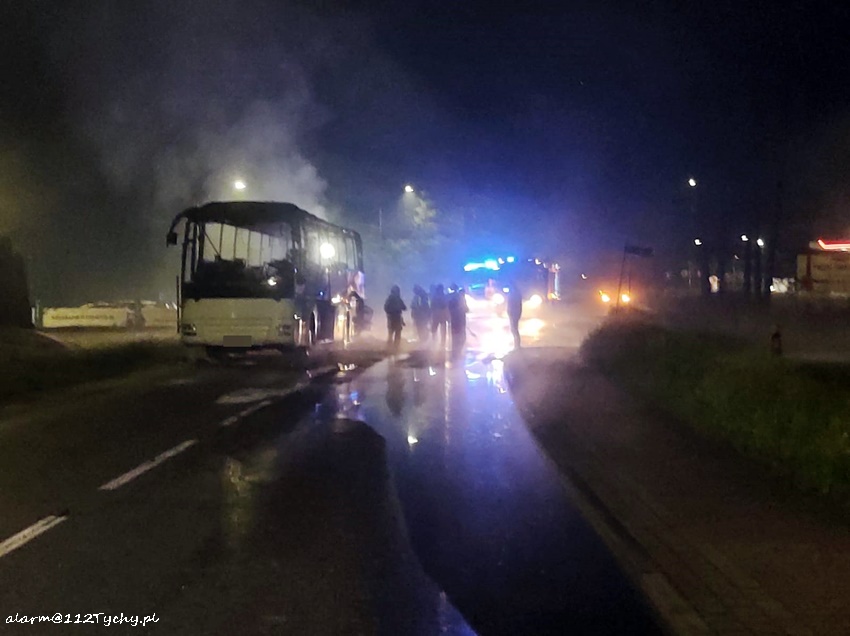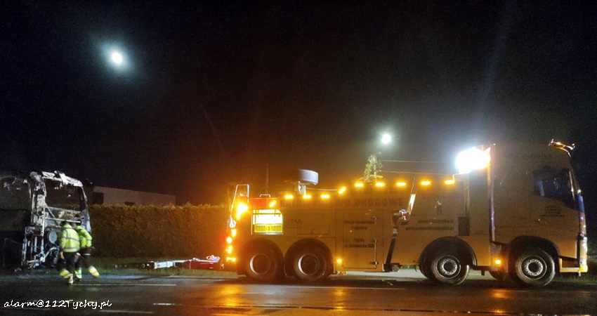 NOCNY POŻAR AUTOKARU TURYSTYCZNEGO W IMIELINIE