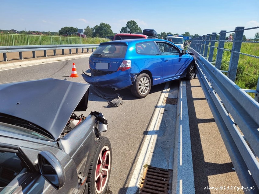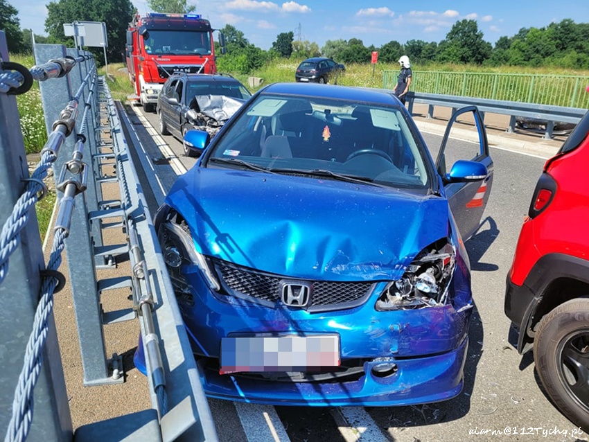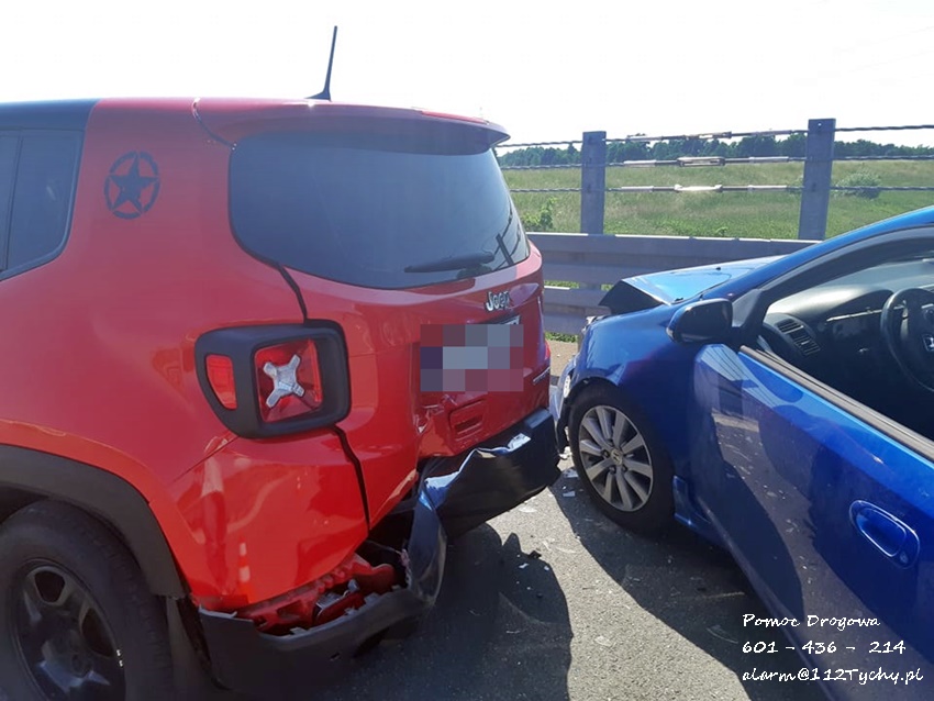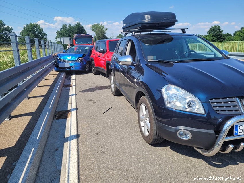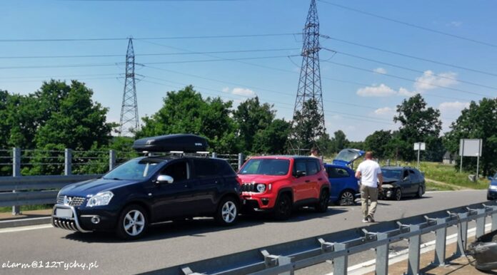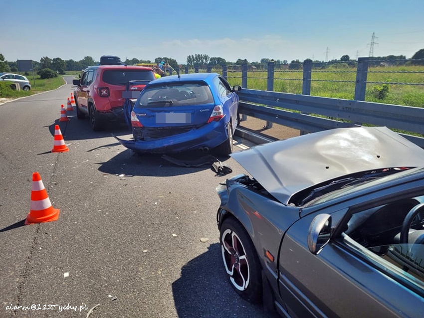 18 czerwca około godziny 14 na ul. Krupniczej w Bieruniu (pogranicze Bierunia i Jedliny) doszło do zdarzenia drogowego z udziałem czterech samochodów osobowych. Na miejsce zdarzenia zadysponowane zostały: zastępy OSP Bieruń Nowy (GBARt), JRG Tychy (GBA, SCRt), ZRM i patrol Policji. Na czas działań ratunkowych w miejscu zdarzenia wprowadzony został ruch wahadłowy. Cztery osoby podróżujące pojazdami trafiły pod opiekę ratowników medycznych. Dwie z nich zostały przetransportowane do szpitala na badania. Ze wstępnych ustaleń pracujących na miejscu Policjantów wynika, że winnym zdarzenia jest kierowca szarej Hondy, który nie zachował odpowiedniej odległości i uderzył w tył niebieskiej Hondy, a ta została popchnięta w tył Jeep-a, a ten uderzył jeszcze w Nissana. Utrudnienia w ruchu trwały ponad dwie godziny. Trzy z czterech uszkodzonych pojazdów dalsza jazdę musiały kontynuować na lawecie. Policjanci KPP Bieruń prowadzą dalsze postepowanie w sprawie tego zdarzenia.