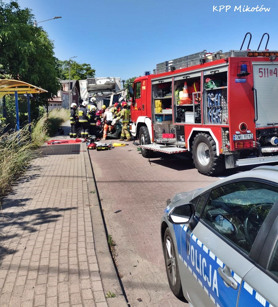 ZDERZENIE OSOBÓWKI Z CIĘŻAROWKĄ NA UL. GLIWICKIEJ W MIKOŁOWIE