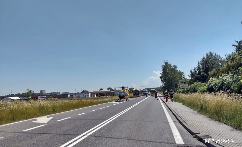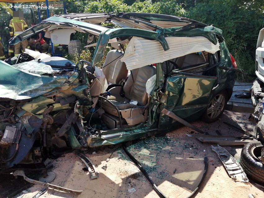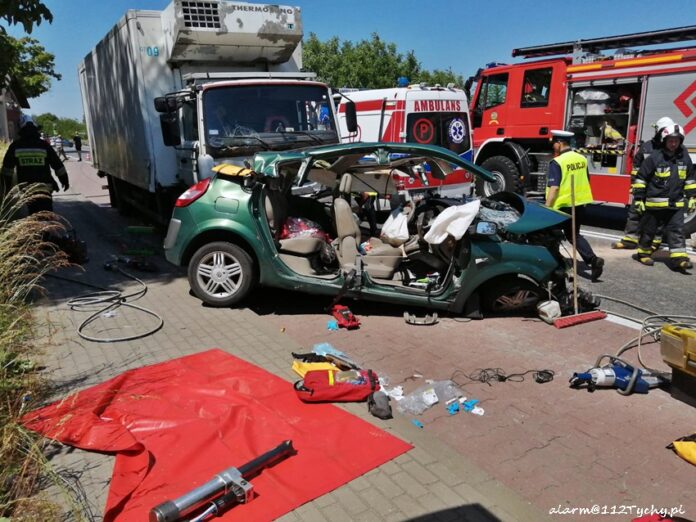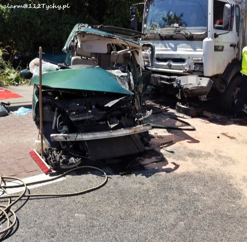 20 czerwca około godziny 13:30 na skrzyżowaniu ul. Gliwicka (DK 44) – Łączna (DW 927) w Mikołowie doszło do zdarzenia drogowego z udziałem samochodu osobowego i samochodu ciężarowego. Na miejsce zdarzenia natychmiast zadysponowane zostały: ZRM, zastępy JRG Mikołów (GBA, SRt), OSP Paniowy (GBA, GLBARt) patrole Policji oraz śmigłowiec LPR – Ratownik 4. Na czas działań ruch w miejscu zdarzania został całkowicie zablokowany, a Policja wyznaczyła objazdy. W zdarzeniu brały udział: osobowe Renault oraz Renault Midliner. Strażacy kilkanaście minut przy użyciu narzędzi hydraulicznych wykonywali dostęp do poszkodowanego mężczyzny, który był zakleszczony we wraku swojego pojazdu. Kierowca osobówki (25 lat) w ciężkim stanie został przetransportowany latającą karetką do szpitala w Sosnowcu. Ze wstępnych ustaleń pracujących na miejscu Policjantów wynika, że kierowca osobówki wyjechał z ul. Łącznej wprost pod jadącą ul. Gliwicka ciężarówkę. Około godziny 15:30 w miejscu zdarzenia zostanie wprowadzony ruch wahadłowy. Policjanci KPP Mikołów prowadzą dalsze postępowanie mające na celu wyjaśnienie przyczyn i okoliczności tego wypadku. Działania na miejscu zostały zakończone przed godziną 18.