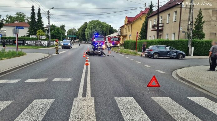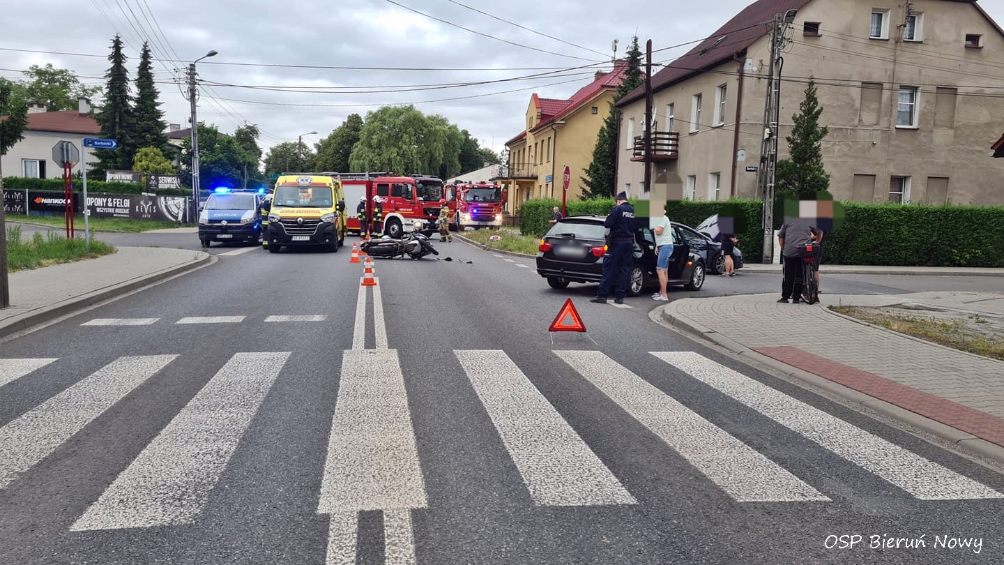 ZDERZENIE MOTOCYKLISTY Z OSOBÓWKĄ NA UL. WAWELSKIEJ W BIERUNIU