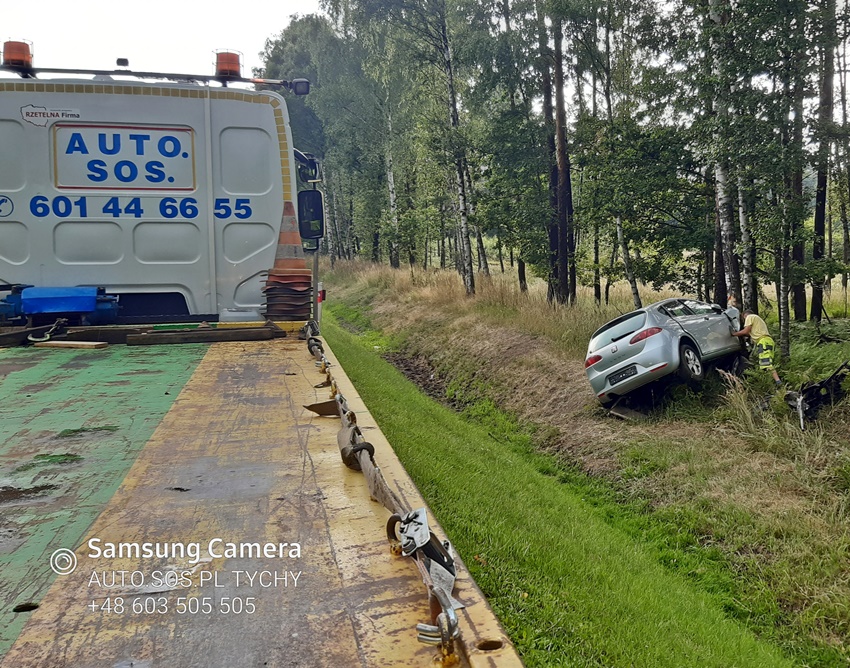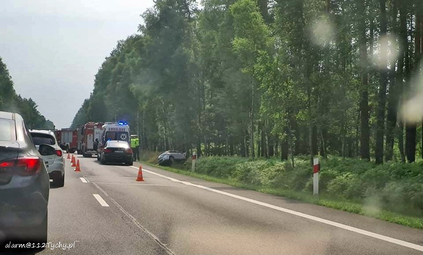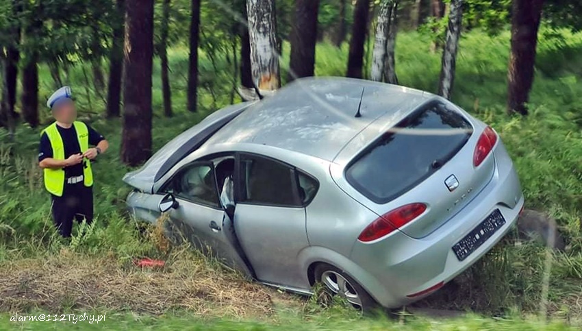 14 lipca około godziny 15:25 dyżurny SK KM PSP Tychy otrzymał zgłoszenie o zdarzeniu drogowym na ul. Beskidzkiej (DK 1) pomiędzy wyjazdem z ul. Sikorskiego, a zjazdem do zameczku w Promnicach. Ze zgłoszenia wynikało, że osobowy Seat wypadł z drogi i uderzył w drzewo. Na miejsce zadysponowane zostały: zespół PRM, zastępy JRG Tychy (GCBA, GCBARt, SCRt) oraz patrole Policji. Na czas działań ratowniczych oraz wyciągania pojazdu z rowu prawy pas w kierunku Pszczyny był zablokowany. Kierująca Seatem kobieta (ok. 40 lat) z obrażeniami ciała została przetransportowana do szpitala na dokładną diagnostykę. Ze wstępnych ustaleń pracujących na miejscu Policjantów wynika, ze do zdarzenia doszło w wyniku utraty panowania nad swoim pojazdem. Policjanci prowadzą dalsze postępowanie w sprawie tego zdarzenia.
