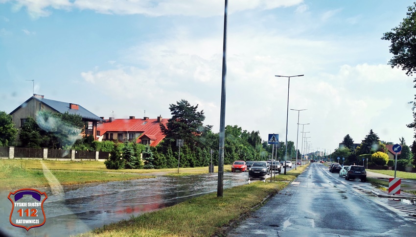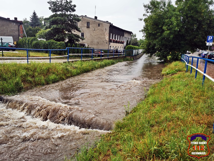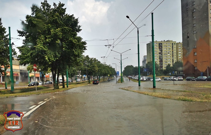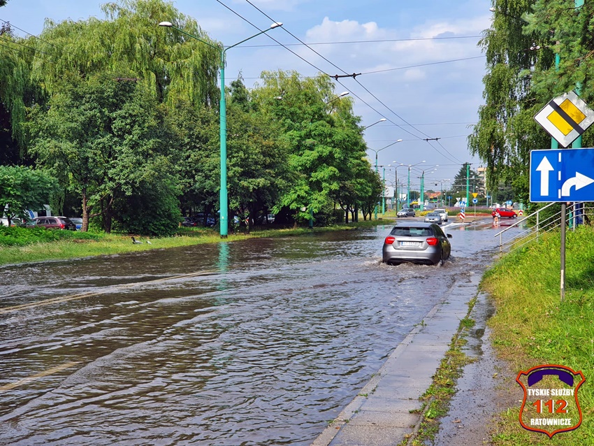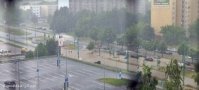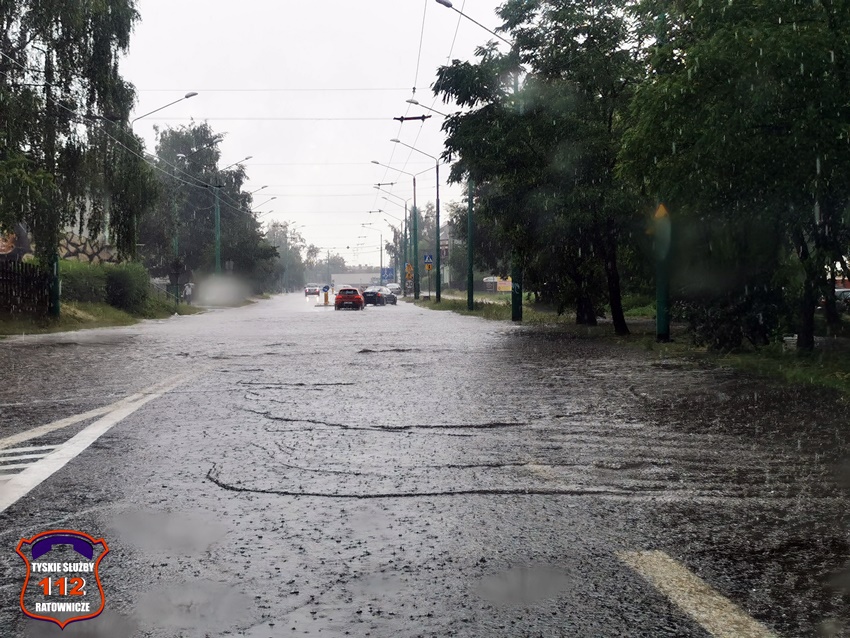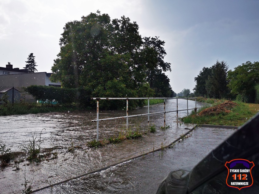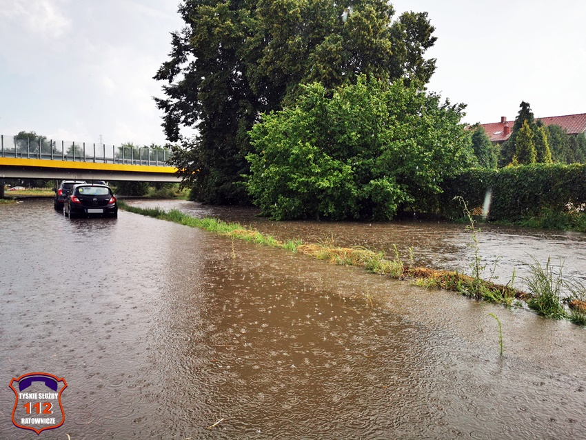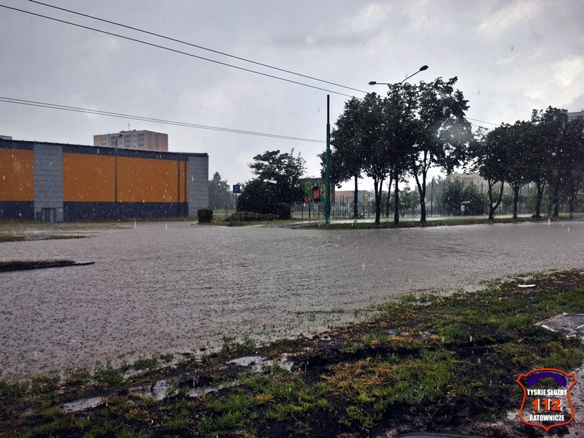16 lipca około godziny 15 nad Tychami przeszła kolejna w ostatnich dniach burza z nawalnymi opadami deszczu. W kilkanaście minut ulice miast zamieniły się w potoki, a w niektórych miejscach woda sięgała 20cm. Studzienki nie odbierały takich ilości wody. Dodatkowo pozalewane zostały parkingi, parkingi podziemne, piwnice oraz połamane zostały drzewa. Do działań zadysponowane zostały zastępy JRG Tychy (GBA, GBA, GCBARt, SCD – 40,3) oraz jednostki OSP: Bojszowy Nowe (GBA, GBA), OSP Bieruń Nowy (GBARt, GCBA), OSP Bieruń Stary (GBA, GCBA), OSP Świerczyniec (GBA), OSP Bojszowy (GBA) i OSP Lędziny (GBA, GCBA). Zalane zostały m.in. ulice: Żwakowska, Harcerska, al. Bielska, al. Jana Pawła II, al. Niepodległości, Mozarta, Moniuszki, Grota – Roweckiego, Wyszyńskiego, Armii Krajowej, Stoczniowców 70, Jaśkowicka, Budowlanych, Burschego. Zalane parkingi podziemne w budynkach wielorodzinnych m.in. przy: ul. Skalnej, Sikorskiego. Powalone drzewa m.in. przy: ul. Lencewicza, ul. Legionów Polskich, ul. Żorska, ul. Konecznego. Zalane zostały również parki i skwery na terenie miasta. Inne działania prowadzone były również na ul. Hutniczej, Borowej. Potok tyski będący ciekiem wodnym odprowadzającym wodę z terenu miast w kilkanaście minut wystąpił z brzegów. Nie są to wszystkie interwencje strażaków. W dalszym ciągu na terenie miast prowadzone są działania mające na celu usunięcie skutków burzy.