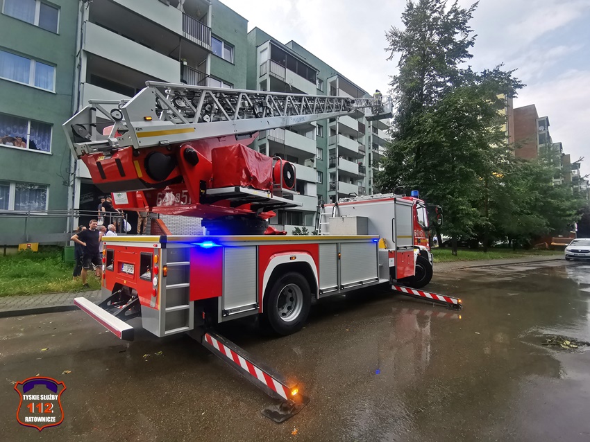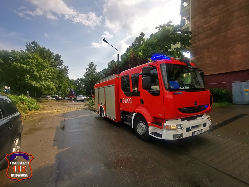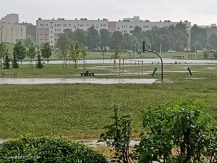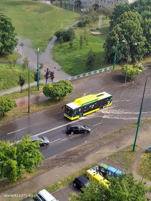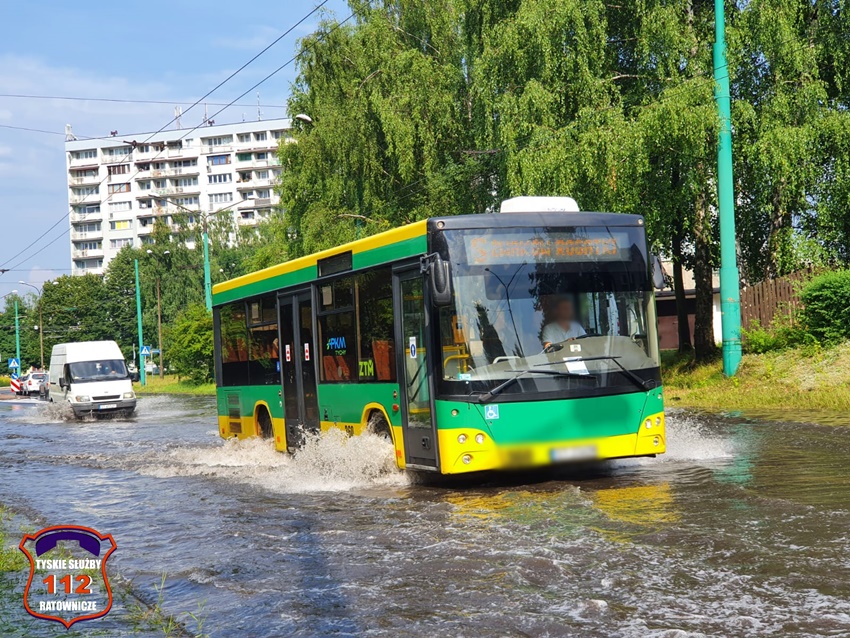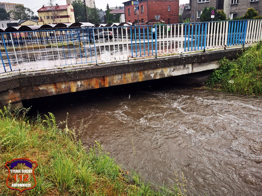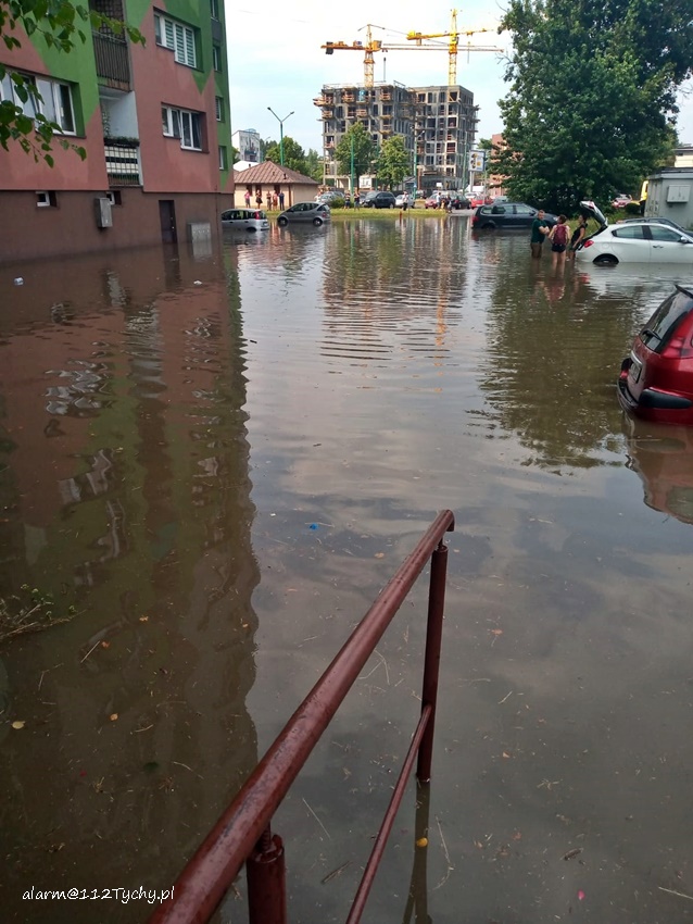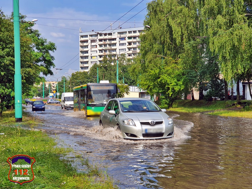 16 lipca około godziny 15 nad Tychami przeszła kolejna w ostatnich dniach burza z nawalnymi opadami deszczu. W kilkanaście minut ulice miast zamieniły się w potoki, a w niektórych miejscach woda sięgała 20cm. Studzienki nie odbierały takich ilości wody. Dodatkowo pozalewane zostały parkingi, parkingi podziemne, piwnice oraz połamane zostały drzewa. Do działań zadysponowane zostały zastępy JRG Tychy (GBA, GBA, GCBARt, SCD – 40,3) oraz jednostki OSP: Bojszowy Nowe (GBA, GBA), OSP Bieruń Nowy (GBARt, GCBA), OSP Bieruń Stary (GBA, GCBA), OSP Świerczyniec (GBA), OSP Bojszowy (GBA) i OSP Lędziny (GBA, GCBA). Zalane zostały m.in. ulice: Żwakowska, Harcerska, al. Bielska, al. Jana Pawła II, al. Niepodległości, Mozarta, Moniuszki, Grota – Roweckiego, Wyszyńskiego, Armii Krajowej, Stoczniowców 70, Jaśkowicka, Budowlanych, Burschego. Zalane parkingi podziemne w budynkach wielorodzinnych m.in. przy: ul. Skalnej, Sikorskiego. Powalone drzewa m.in. przy: ul. Lencewicza, ul. Legionów Polskich, ul. Żorska, ul. Konecznego. Zalane zostały również parki i skwery na terenie miasta. Inne działania prowadzone były również na ul. Hutniczej, Borowej. Potok tyski będący ciekiem wodnym odprowadzającym wodę z terenu miast w kilkanaście minut wystąpił z brzegów. Nie są to wszystkie interwencje strażaków. W dalszym ciągu na terenie miast prowadzone są działania mające na celu usunięcie skutków burzy.