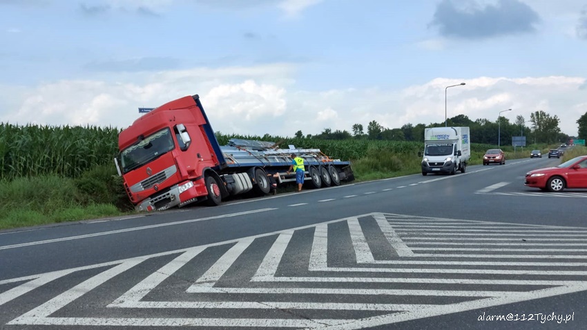 20 lipca około godziny 12 na skrzyżowaniu ul Chełmska (DW 934) i ul. Górnośląskiej (DW 780) w Chełmie Śląskim doszło do zdarzenia drogowego z udziałem ciągnika siodłowego marki Renault z naczepą. Z niewyjaśnionych przyczyn zespół pojazdów wjechał do przydrożnego rowu. Na miejsce zdarzenia zadysponowany został patrol bieruńskiej Policji. Celem wyciągnięcia pojazdu z potrzasku na miejsce wezwana została pomoc drogowa. Na czas wyciągania pojazdu ruch został całkowicie wstrzymany.