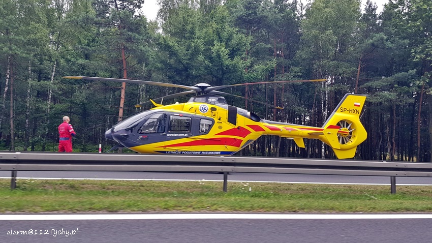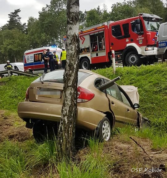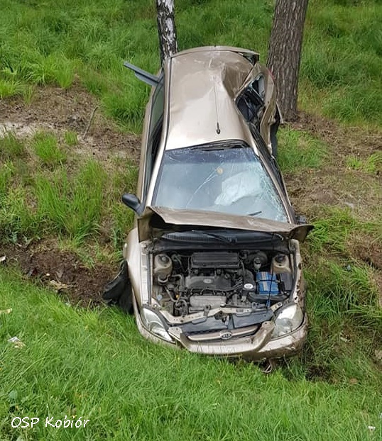 25 lipca około godziny 15:15 dyżurny SK KM PSP Tychy otrzymał zgłoszenie o dachowaniu samochodu osobowego na krajowej 1 (572 km) – pas w kierunku Tychów w Kobiórze. Na miejsce zadysponowane zostały zastępy OSP Kobiór (GBARt), JRG Tychy (GBA, SCRt), JRG Pszczyna (SLRt) oraz zespół PRM, śmigłowiec LPR – Ratownik 4, a także patrole KMP Tychy i KPP Pszczyna. Ruch w kierunku Tychów na czas działań ratunkowych został całkowicie wstrzymany. Kierowca osobowej KIA ( mężczyzna ok. 50 lat) z niewyjaśnionych przyczyn zjechał z drogi do przydrożnego rowu, dachował i uderzył w drzewo. Z obrażeniami ciała latającą karetką został przetransportowany do szpitala w Katowicach Ochojcu. Przez blisko dwie godziny w miejscu zdarzenia występowały utrudnienia w ruchu. Policjanci KPP Pszczyna prowadza dalsze postępowanie mające na celu wyjaśnienie przyczyn i okoliczności tego zdarzenia.