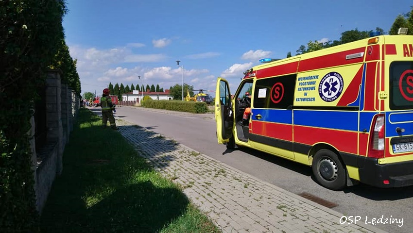27 lipca około godziny 15 dyżurny SK KM PSP Tychy otrzymał zgłoszenie z prośbą o wyznaczenie i zabezpieczenie lądowiska dla śmigłowca LPR – Ratownik 4 w rejonie ul. Wandy w Lędzinach. Latająca karetka została zadysponowana celem szybkiego transportu mężczyzny po upadku z wysokości ok. 3m na terenie pobliskiej budowy. Poszkodowany znajdował się już pod opiekę załogi naziemnego zespołu ratownictwa medycznego. Do zabezpieczenia zadysponowane zostały zastępy OSP Lędziny (GLBA, SLRr), JRG Tychy (GBA) oraz patrol bieruńskiej Policji. Śmigłowiec wylądował na parkingu pobliskiego kościoła. Mężczyzna z obrażeniami ciała został przetransportowany drogą lotniczą do szpitala w Katowicach Ochojcu. Działania na miejscu trwały około czterdziestu minut. Trwa ustalanie przyczyn i okoliczności tego nieszczęśliwego upadku.