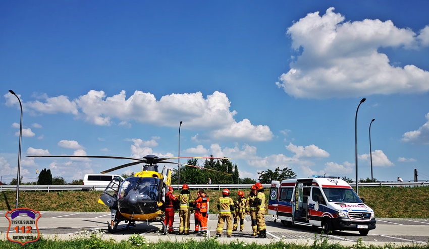 28 lipca po godzinie 14 dyżurny SK KM PSP Tychy otrzymał zgłoszenie z prośbą o zabezpieczenie lądowiska dla załogi śmigłowca Lotniczego Pogotowia Ratunkowego – Ratownik 4 w rejonie ul. Grota – Roweckiego – Jaworowa. Załoga śmigłowca wraz z naziemnym zespołem ratownictwa medycznego zostały zadysponowane na jedną działek rekreacyjnych przy ul. Jaworowej gdzie mężczyzna został ukąszony przez owada. W wyniku tego ukąszenia doszło u niego do wstrząsu anafilaktycznego i zaczął on mieć problemy z oddychaniem. Na miejsce zadysponowany został zastęp JRG Tychy (GBA). Śmigłowiec wylądował na parkingu przy ul. Grota – Roweckiego. Poszkodowany mężczyzna został przetransportowany drogą lotniczą do szpitala w Katowicach Ochojcu. Około godziny 15:30 działania zostały zakończone. Poszkodowanemu życzymy szybkiego powrotu do zdrowia.