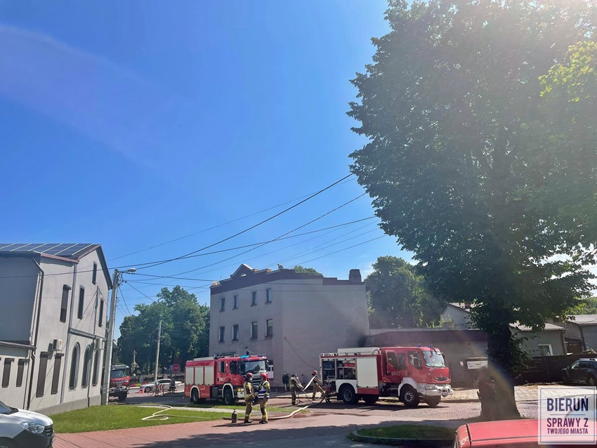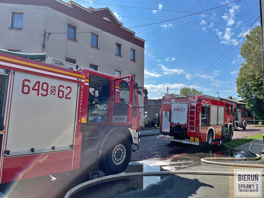 30 lipca około godziny 9:45 dyżurny SK KM PSP Tychy otrzymał zgłoszenie o pożarze sklepu przy ul. Staromłyńskiej 1 w Bieruniu. Na miejsce zadysponowane zostały zastępy OSP Bieruń Stay (GBA) i JRG Tyhcy (GBA, GCBARt, SLRr) oraz patrol Policji. Na czas działań gaśniczych ruch w rejonie skrzyżowania ul. Krakowska – Zdrowia oraz Zdrowia – Staromłyńska został zablokowany. Strażacy podali kilka prądów wody na palący się budynek. Zaopatrzenie wodne zostało wykonana z sieci hydrantowej. Z budynku wyniesiona została butla z gazem. Przeprowadzone zostało kontrolowane wypalanie gazu, a następnie z uwagi na niskie ciśnienie wypływającego gazu został on upuszczony do końca z rozproszeniem chmury przy użyciu prądu wody. Po ugaszeniu pożaru zgliszcza zostały przeszukane, a następnie budynek został sprawdzony przy użyciu kamery termowizyjnej. Działania gaśnicze po około dwóch godzinach zostały zakończone. Trwa ustalanie przyczyn i okoliczności powstania pożaru.