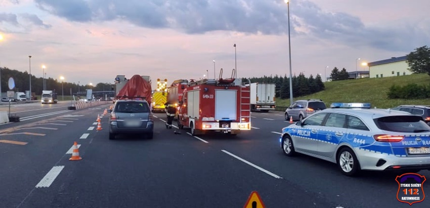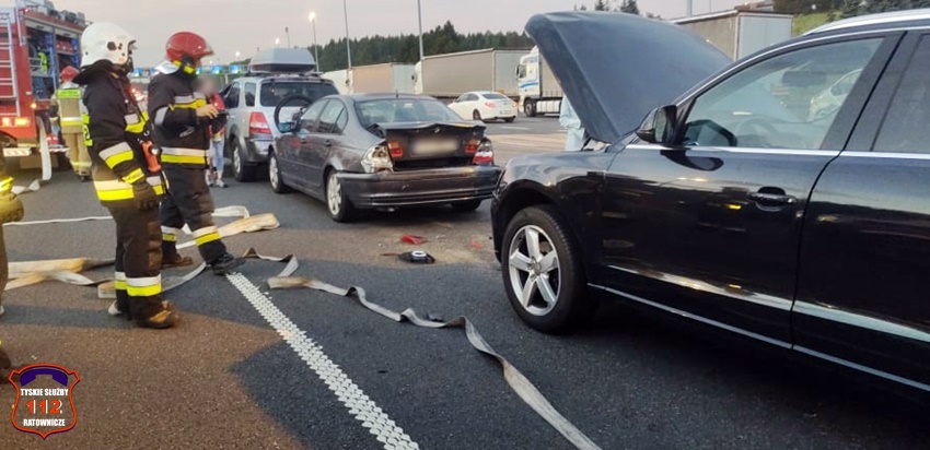 31 lipca około godziny 4:20 na przed punktem poboru opłat w kierunku Krakowa doszło do zdarzenia drogowego z udziałem czterech samochodów osobowych. Na miejsce zdarzenia natychmiast zadysponowane zostały zespoły PRM, zastępy straży pożarnej z OSP Imielin (GLBM), JRG Tychy (GBA, SCRt), JRG Mysłowice (GBA, GCBA, SCRt), JRG Jaworzno oraz patrole Policji i służba autostradowa. Na czas działań 3 pasy dojazdowe do punktu poboru opłat zostały zablokowane. Ze wstępnych ustaleń pracujących na miejscu Policjantów wynika, że sprawcą zdarzenia jest kierowca Opla, który nie zachował należytej odległości i ostrożności podczas dojazdu do punktu poboru opłat. W wyniku tego uderzył w stojące w kolejce Audi, to następnie uderzyło w BMW, a ono z kolei uderzyło w Kia. Uczestnicy zdarzenia trafili pod opiekę przybyłych na miejsce ratowników medycznych. Działania służb ratunkowych trwały około dwóch godzin. Śląscy Policjanci prowadzą dalsze postępowanie w sprawie tego zdarzenia.