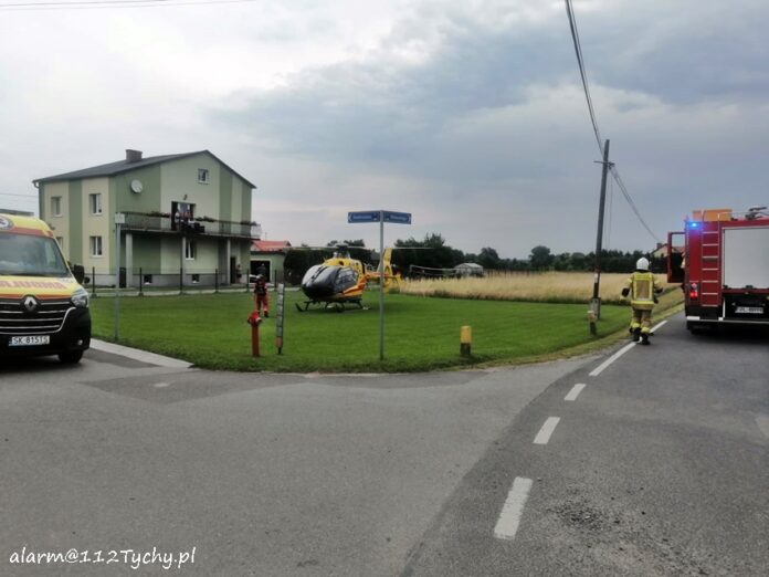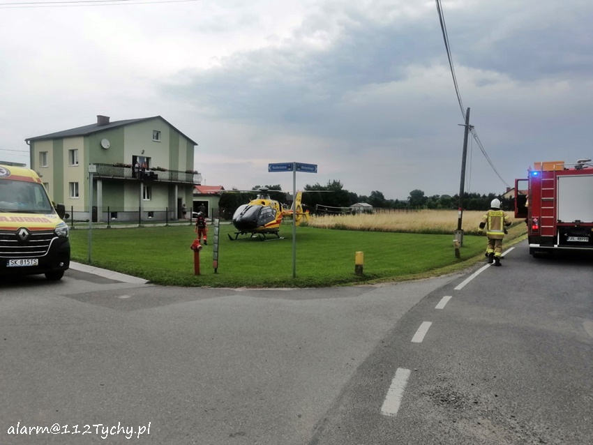 31 lipca około godziny 8:50 dyżurny SK KM PSP Tychy otrzymał zgłoszenie z prośbą o wyznaczenie i zabezpieczenie lądowiska dla śmigłowca LPR – Ratownik 4 w rejonie ul. Nadbrzeżnej w Czarnuchowicach. Śmigłowiec został zadysponowany wraz z naziemnym ZRM do mężczyzny po upadku z wysokości. Do zabezpieczenia zadysponowane zostały zastępy OSP Czarnuchowice (GBA) oraz JRG Tychy (GBA). Latająca karetka wylądowała przy skrzyżowaniu ul. Nadbrzeżna – Mielęckiego. Jak się okazało 43 – letni mężczyzna wyskoczył z okna jednego z pobliskich domów. Z obrażeniami ciała (głowa) drogą lotniczą został przetransportowany do szpitala w Katowicach Ochojcu. Około godziny 9:30 działania zostały zakończone. Trwa ustalanie dokładnych przyczyn i okoliczności tego wypadku.