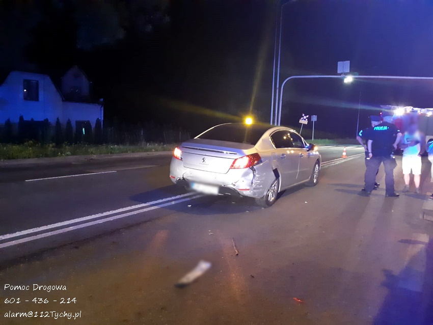 9 sierpnia około godziny 21:30 dyżurny SK KM PSP Tychy otrzymał zgłoszenie o zdarzeniu drogowym na ul. Mikołowskiej w rejonie wyjazdu ze stacji paliw (przy ul. Mąkołowskiej). Na miejsce zdarzenia zadysponowane zostały zastępy OSP Lędziny (GBA) z zabezpieczenia rejonu operacyjnego KM PSP Tychy oraz JRG Tychy (SCRt), zespoły PRM i patrole Policji. Na czas działań ruch w kierunku Mikołowa odbywał się z utrudnieniami. W zdarzeniu brały udział samochody: Fiat i Peugeot. Oboje kierujący trafili pod opiekę ratowników medycznych. Z ustaleń pracujących na miejscu Policjantów wynika, że sprawczynią zdarzenia jest kierująca Fiatem kobieta (22 lata), która uderzyła w tył Peugeota, którym kierował młody mężczyzna (30 lat). Utrudnienia w ruchu trwały blisko dwie godziny. Policjanci KMP Tychy prowadzą dalsze postępowanie w sprawie tego zdarzenia.