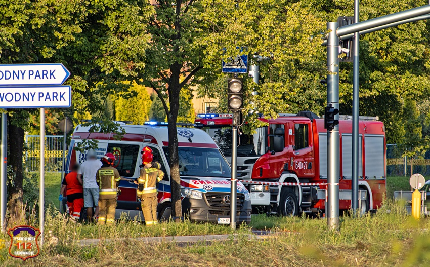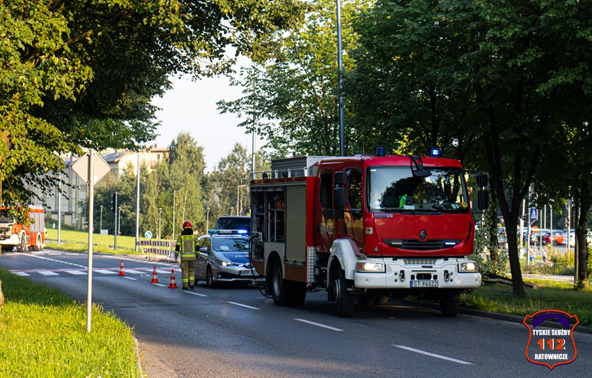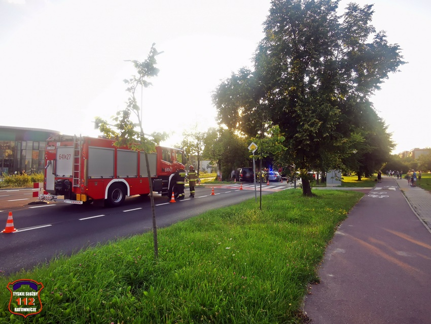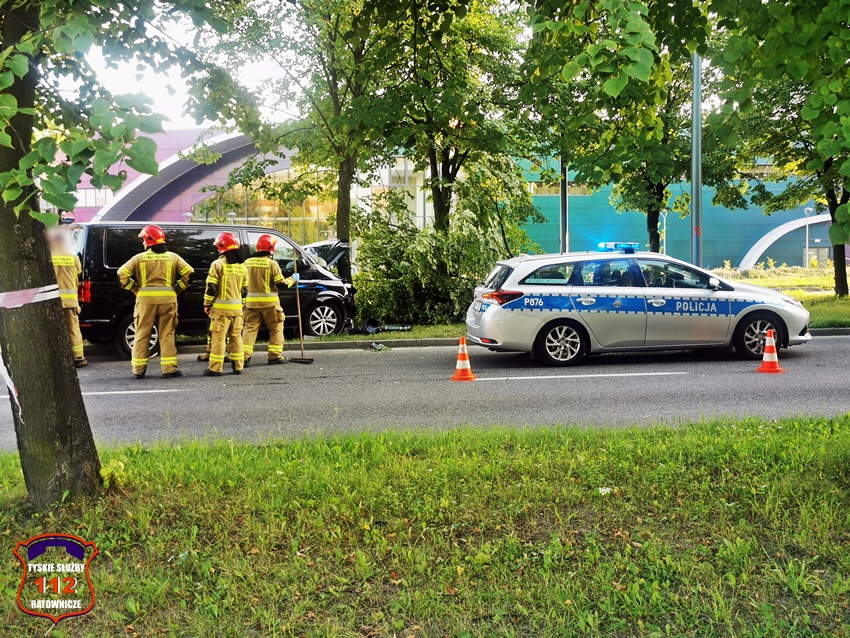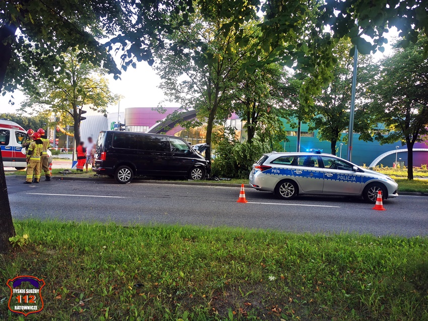 13 sierpnia około godziny 18:20 dyżurny SK KM PSP Tychy otrzymał zgsłoszenie, ze na ul. Sikorskiego samochód osobowy typu bus uderzył w sygnalizację świetlą i drzewo. Do zdarzenia miało dojść w rejonie Aquaparku. Na miejsce natychmiast zadysponowane zostały zastępy JRG Tychy (GBA, GCBARt, SCRt), patrol WRD KMP Tychy oraz zespół PRM. Po dotarciu na miejsce zgłoszenie zostało potwierdzone. Na czas działań ratunkowych ruch w miejscu zdarzenia został całkowicie zablokowany. Trzy osoby podróżujące VW trafiły pod opiekę ratowników medycznych. na szczęście nie doznały one poważniejszych obrażeń. Z ustaleń pracujących na miejscu Policjantów jak i relacji kierowcy VW wynika, że chciał on skręcić na parking pobliskiego Aquaparku jednak oślepiło go słońce i pojechał na wprost uderzając w słupy sygnalizacji świetlnej oraz drzewo. Po około godzinie uszkodzony pojazd został usunięty a ruch przywrócono. Policjanci KMP Tychy prowadzą dalsze postępowanie w sprawie tego zdarzenia.