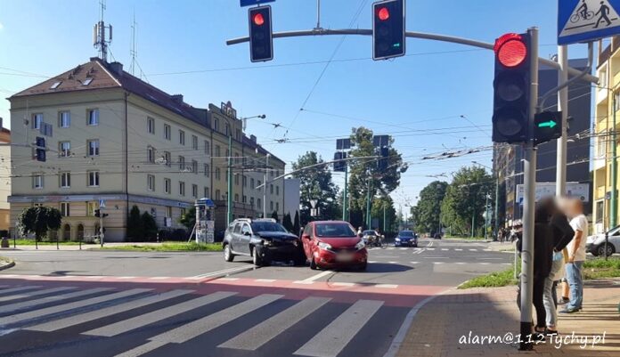 28 sierpnia po godzinie 9:30 na skrzyżowaniu ul. Begonii – Budowlanych – Bocheńskiego doszło do zdarzenia drogowego z udziałem dwóch osobówek. W bok Nissana uderzyła Dacia. Na miejsce zdarzenia zadysponowane zostały zastępy JRG Tychy oraz patrol Policji. Na szczęście osobom podróżującym pojazdami nic się nie stało. Z ustaleń pracujących na miejscu Policjantów wynika, że kierująca Nissanem kobieta wjechała na skrzyżowanie przy nadawanym na sygnalizatorze czerwonym światle i warunkowej zielonej strzałce wprost pod jadącą ul. Budowlanych w kierunku dworca PKP Dacię. Uszkodzone pojazdy częściowo za około godzinę zablokowały skrzyżowanie. Policjanci KMP Tychy prowadzą dalsze postępowanie w sprawie tego zdarzenia.