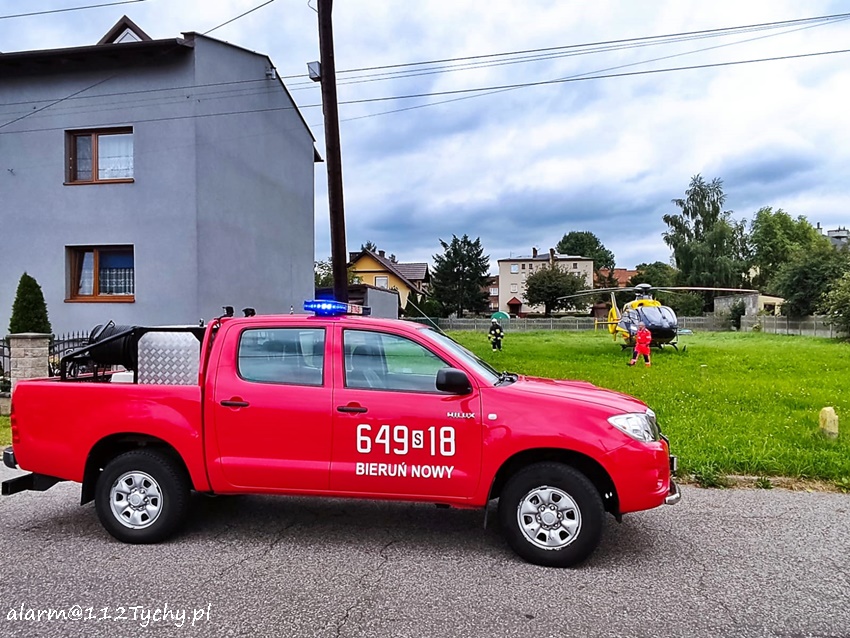 20 września po godzinie 13 dyżurny SK KM PSP Tychy otrzymał zgłoszenie z prośbą o zabezpieczenie lądowiska dla latającej karetki w Bieruniu przy ul. Korfantego. Na miejsce zadysponowane zostały zastępy OSP Bieruń Nowy (SLRr) oraz JRG Tychy (GBA). Przed przylotem śmigłowca LPR maluch przebywał pod opieką ratowników medycznych z naziemnego zespołu ratownictwa medycznego. Załoga latającej karetki została zadysponowana do pomocy małemu dziecku, które się zadławiło. Lekarz LPR podjął decyzję o transporcie malucha do szpitala w Katowicach Ligocie gdzie została podjęta dalsza diagnostyka. Po około czterdziestu minutach działania zostały zakończone.