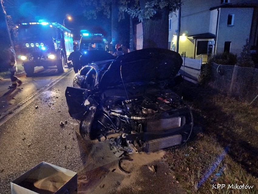 24 września około godziny 23 na ul. Rybnickiej w Mikołowie doszło do zdarzenia drogowego z udziałem jednego samochodu osobowego. Kierujący osobowym Mercedesem utracił panowanie nad swoim pojazdem i uderzył w przydrożne drzewo. Po tym uderzeniu pojazd dachował. Na miejsce zdarzenia zadysponowane zostały zastępy OSP Mikołów (SLRtBA), JRG Mikołów (GBA, SRt), zespoły PRM oraz patrole Policji. Na czas działań ratunkowych ruch został wstrzymany. Pojazdem podróżowały trzy osoby: kierowca (20 lat) i dwie pasażerki (21 lat). Cała trójka trafiła pod opiekę ratowników medycznych. Jak się okazało kierowca Mercedesa był już znany mikołowskim Policjantom. Badanie alkomatem wykazało ok. 2 promile alkoholu. Ten sam mężczyzna w kwietniu tego roku podczas kontroli drogowej również był pijany, a w policyjnej bazie widniał zapis o cofnięciu uprawnień za wykroczenia w ruchu drogowym. Działania służ na miejscu zdarzenia trwały kilak godzin. Policjanci KPP Mikołów prowadzą dalsze postępowanie w sprawie tego wypadku,