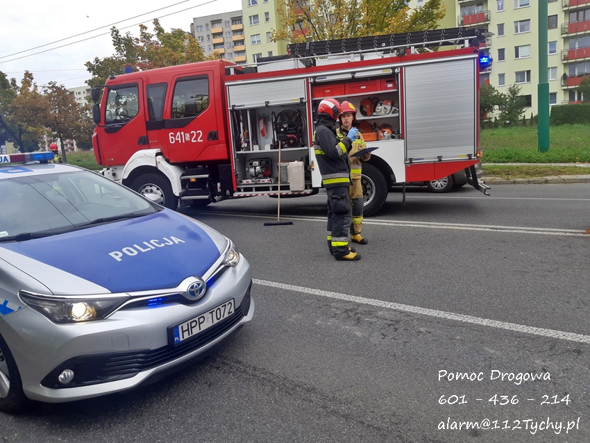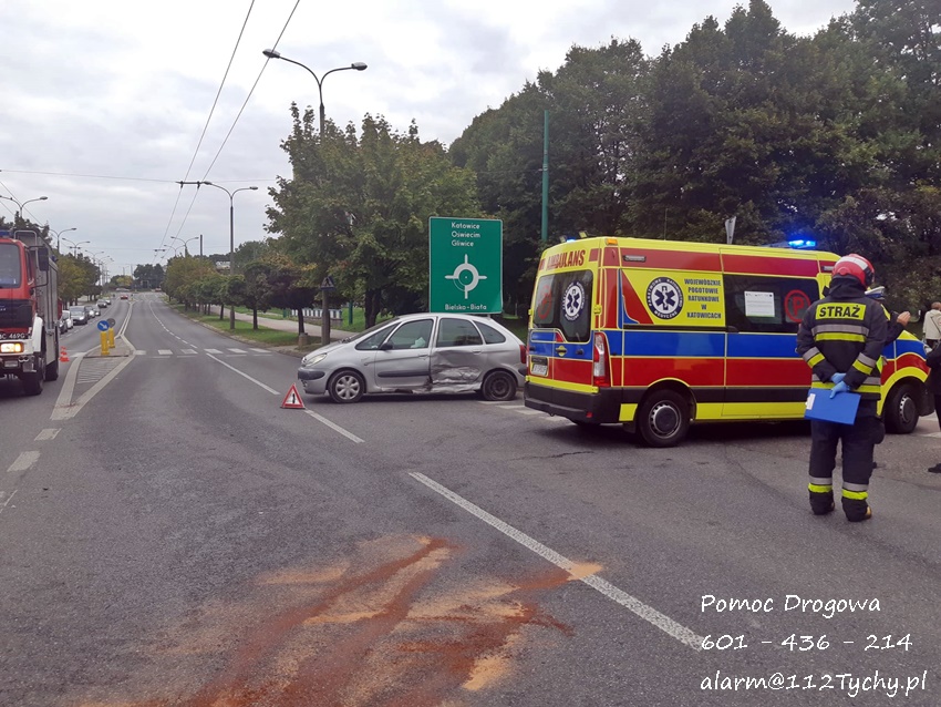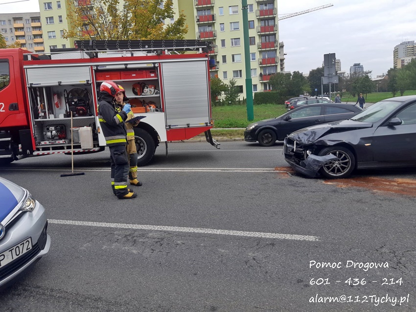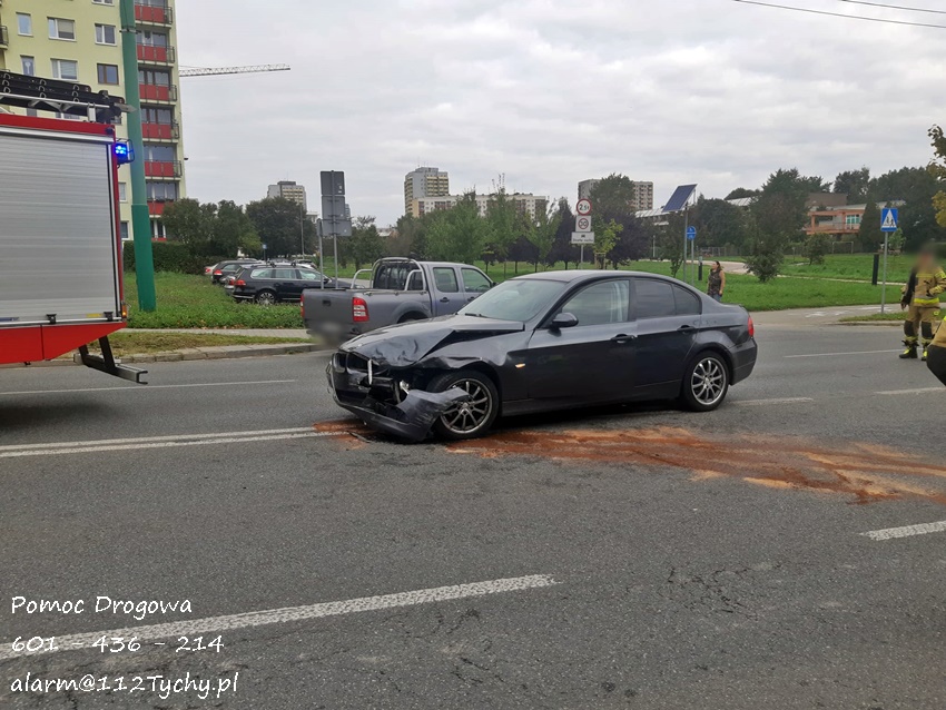 25 września po godzinie 9 na ul. Armii Krajowej w rejonie skrzyżowania z ul. Jaracza doszło do czołowo – bocznego zderzenia dwóch pojazdów. Na miejsce zdarzenia wezwane zostały: zespół ratownictwa medycznego WPR Katowice – stacja Tychy, patrol WRD KMP Tychy oraz zastępy JRG Tychy (GBA, SCRt). W miejscu zdarzenia występowały utrudnienia w ruchu. Ze wstępnych ustaleń pracujących na miejscu Policjantów wynika, że sprawcą zdarzenia jest kierowca Citroena, który włączając się do ruchu osiedlowego parkingu nie ustąpił pierwszeństwa przejazdu kierowcy BMW, które jechało w kierunku al. Piłsudskiego. Wszyscy uczestnicy zdarzenia (3 osoby) trafili pod opiekę ratowników medycznych. Na szczęście nie doznali oni obrażeń. Utrudnienia w ruchu trwały ponad godzinę. Policjanci KMP Tychy prowadzą dalsze postepowanie w sprawie tego zdarzenia.