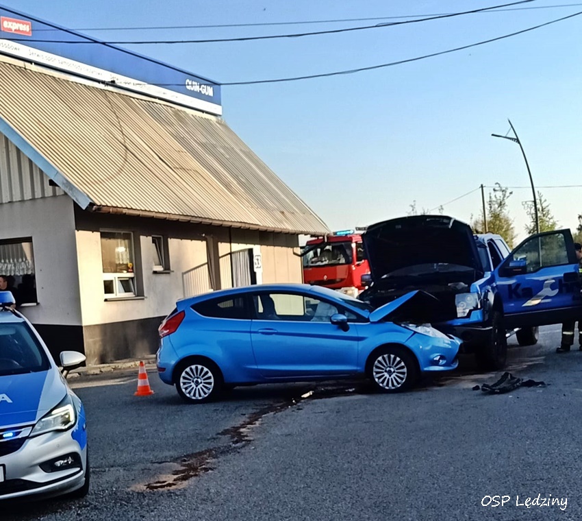 ZDERZENIE DWÓCH FORDÓW NA UL. GWARKÓW W LĘDZINACH