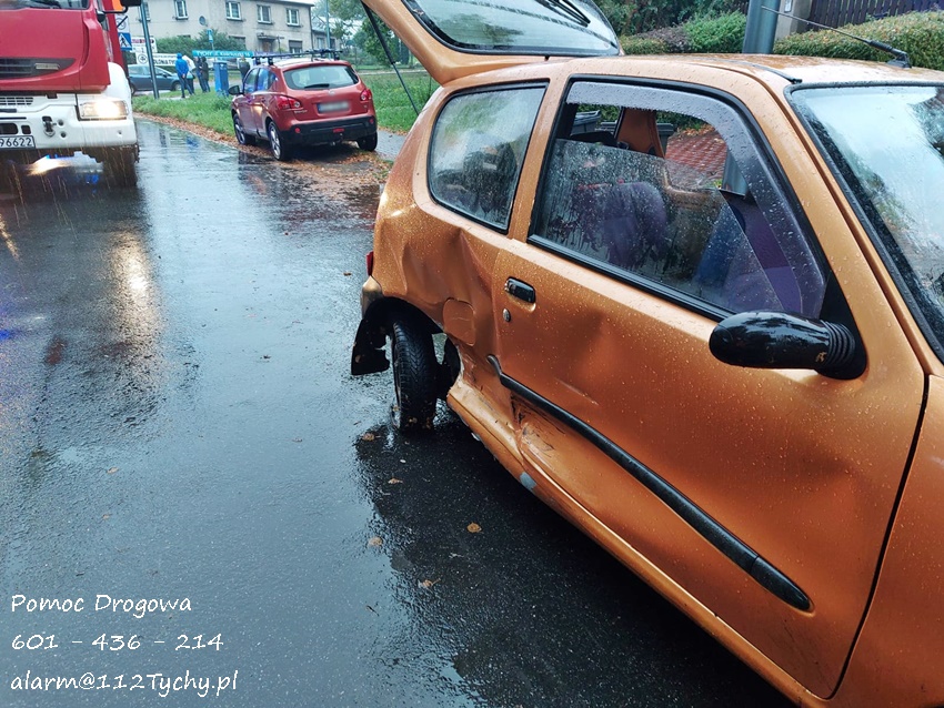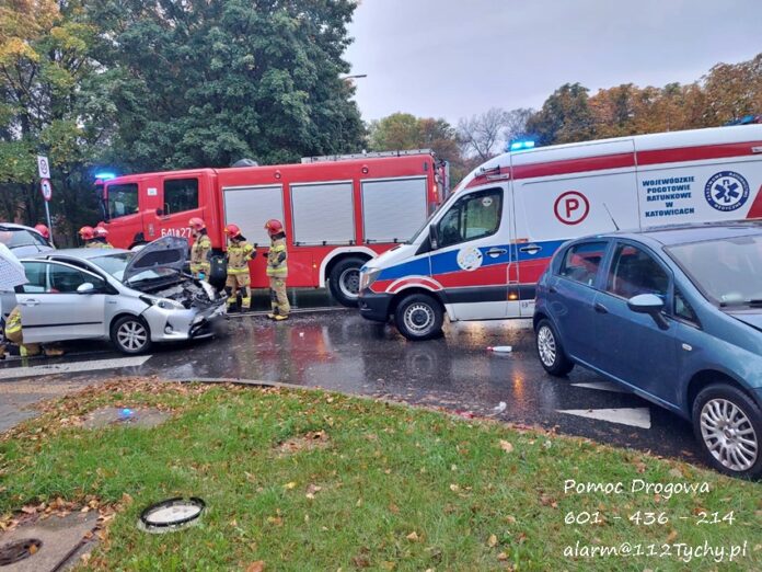 6 października około godziny 17:10 na skrzyżowaniu ul. Burschego – Damrota doszło do zdarzenia drogowego z udziałem trzech samochodów osobowych. W zdarzeniu brały udział dwa Fiaty i Toyota. Na miejsce zdarzenia zadysponowane zostały: zespół PRM, zastępy JRG Tychy (GBA, GCBARt, SCRt) oraz patrol Policji. Na czas działań ratunkowych ruch na skrzyżowaniu został całkowicie zablokowany. Ze wstępnych ustaleń pracujących na miejscu Policjantów wynika, że sprawcą zdarzenia jest kierowca Fiata Seicento, który jadąc ul. Damrota (od dworca) przez skrzyżowanie z ul. Burschego na wprost nie ustąpił pierwszeństwa przejazdu kierującemu Fiatem Punto doprowadzając do zderzenia. W wyniku uderzenia przez Fiata Punto, Fiat Seicento uderzył jeszcze w oczekującą na możliwość włączenia się do ruchu Toyotę Yaris. Na szczęście w wyniku tego zdarzenia nikt z uczestników nie ucierpiał. Po wykonaniu dokumentacji przez pracujących na miejscu Policjantów uszkodzone pojazdy zostały usunięte ze skrzyżowania, a strażacy zneutralizowali plamy płynów eksploatacyjnych. Utrudnienia w ruchu trwały ponad godzinę. Policjanci KMP Tychy prowadzą dalsze postępowanie w sprawie tego zdarzenia.