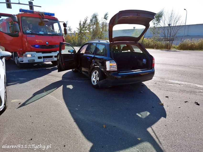 9 października około godziny 10:50 dyżurni SK KM PSP Tychy oraz KMP Tychy otrzymali zgłoszenie o zdarzeniu drogowym z udziałem dwóch pojazdów na skrzyżowaniu ul. Turyńska – Samochodowa. Na miejsce zdarzenia zadysponowane zostały zastępy JRG Tychy (GBA, SCRt), zespół PRM oraz patrol Policji. Na czas działań służb ratunkowych na skrzyżowaniu występowały utrudnienia w ruchu. W zdarzeniu brały udział Audi i VW. Pasażer Audi (dziecko) trafiło pod opiekę ratowników medycznych. Na szczęście po przebadaniu okazało się, ze nie odniosło ono poważnych obrażeń i mogło pod opieką rodziców wrócić do domu. Z ustaleń pracujących na miejscu Policjantów jak i relacji uczestników zdarzenia wynika, ze winnym zdarzenia jest kierowca VW, który wjechał na skrzyżowanie przy nadawanym na sygnalizatorze czerwonym świetle. VW uderzył w bok Audi, a następnie wyjechał z drogi na pobliski parking. Działania na miejscu trwały blisko dwie godziny. Policjanci KMP Tychy prowadzą dalsze postępowanie w sprawie tego zdarzenia.