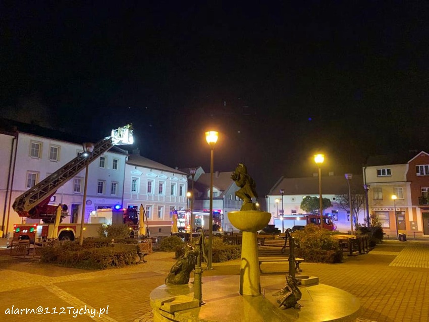 17 października około godziny 22:20 dyżurny KMP Tychy otrzymał zgłoszenie o pożarze sadzy w przewodzie kominowym jednego z domów przy ul. Rynek w Bieruniu. Na miejsce zgłoszenia natychmiast zadysponowane zostały zastępy OSP Bieruń Stary (GBA) oraz JRG Tychy (GBA, SCD – 40,3). Po dotarciu na miejsce i rozpoznaniu sytuacji zgłoszenie zostało potwierdzone. Strażacy wygasili palenisko i przy użyciu lancy kominowej przystąpili do działań gaśniczych od strony pieca, a następnie z kosza drabiny mechanicznej. Dodatkowo po ugaszeniu pożaru strażacy wyczyścili komin przy użyciu wyciora. Po około godzinie działania na miejscu zostały zakończone.
