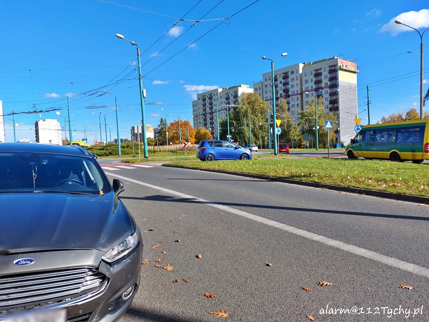 22 października około godziny 10:20 na rondzie Paprocańskim (Piłsudskiego – Armii Krajowej) doszło do zdarzenia drogowego z udziałem dwóch samochodów osobowych. W bok Toyoty uderzył Ford. Na miejsce zdarzenia wezwany został patrol WRD KMP Tychy. Pracujący na miejscu Policjanci wstępnie ustalili, że kierowca Toyoty wymusił pierwszeństwa na kierowcy Forda doprowadzając do zderzenia. Na szczęście osobom podróżującym pojazdami nic się nie stało. Uszkodzone pojazdy zostały usunięte ze skrzyżowania, a po około godzinie działania zostały zakończone. Policjanci KMP Tychy prowadza dalsze postępowanie w tej sprawie.