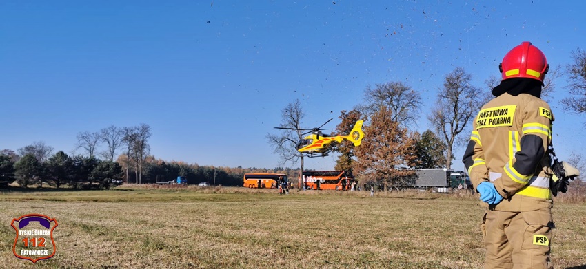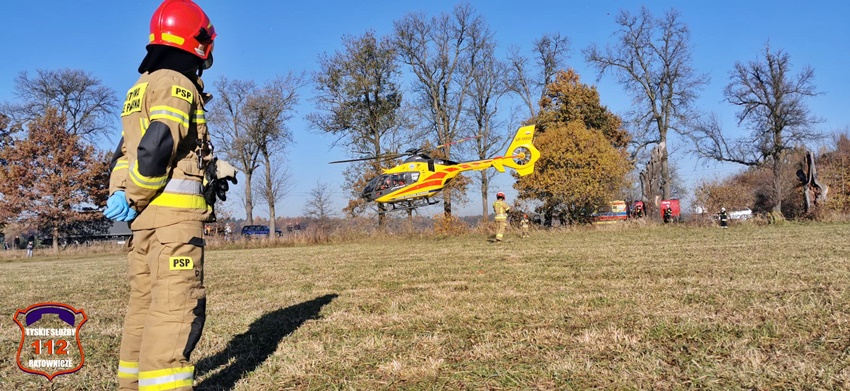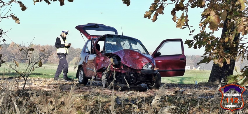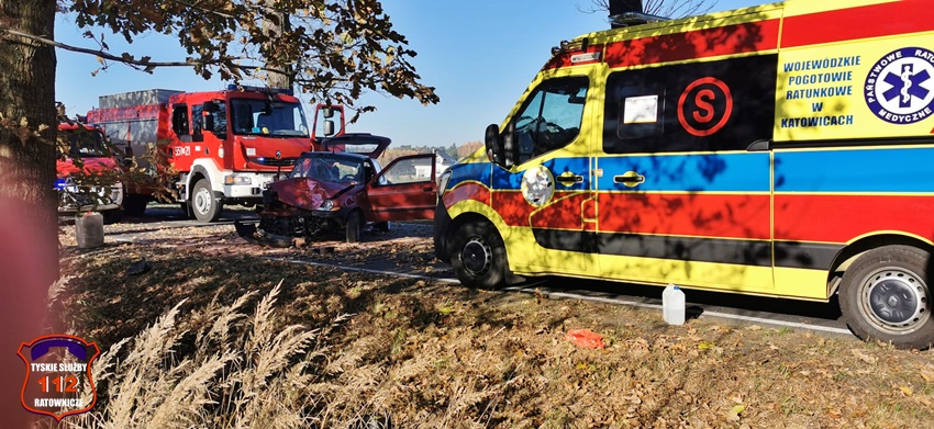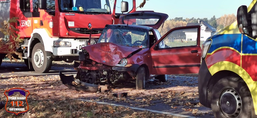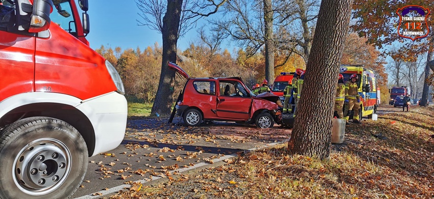 30 października około godziny 9:30 na ul. Żubrów w Międzyrzeczu doszło do zdarzenia drogowego z udziałem dwóch pojazdów. W wyniku zdarzenia jeden z uczestniczących w zdarzeniu samochodów uderzył w przydrożne drzewo. W pojeździe została zakleszczona kierujaca pojazdem. Na miejsce zdarzenia natychmiast zadysponowane zostały zastępy OSP Międzyrzecze (GLM), JRG Tychy (GBA, SCRt), JRG Pszczyna (GBA, SLRt), ZRM, śmigłowiec LPR – Ratownik 4 oraz patrol Policji. Na czas działań ratunkowych ruch na ul. Żubrów został całkowicie zablokowany. W zdarzeniu brały udział Fiat Seicento i VW Polo. Kierująca Fiatem trafiła pod opiekę ratowników medycznych, a następnie z obrażeniami ciała (uraz klatki piersiowej i kolana) została przetransportowana latającą karetką do szpitala w Katowicach Ochojcu. Ze wstępnych ustaleń pracujących na miejscu Policjantów WRD KPP Bieruń wynika, że kierowca VW rozpoczął manewr wyprzedzania nie upewniając się, że może go wykonać bezpiecznie. Podczas manewru wyprzedzania z naprzeciwka nadjechał inny pojazd, a kierowca VW uciekając na swój pas ruchu zahaczył tyłem swojego pojazdu wyprzedzanego Fiata. W wyniku tego uderzenia kierująca Fiatem utraciła panowanie nad swoim pojazdem i uderzyła w przydrożne drzewo. Utrudnienia w ruchu mogą potrwać do godziny 12:30. Policjanci KPP Bieruń prowadzą dalsze postępowanie w sprawie tego zdarzenia.
