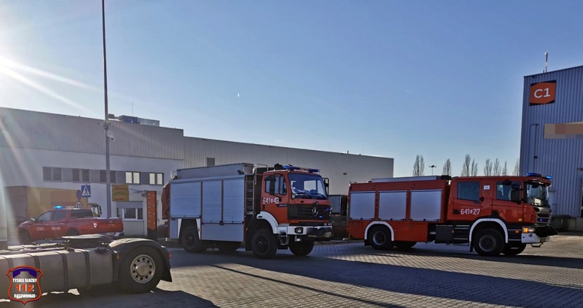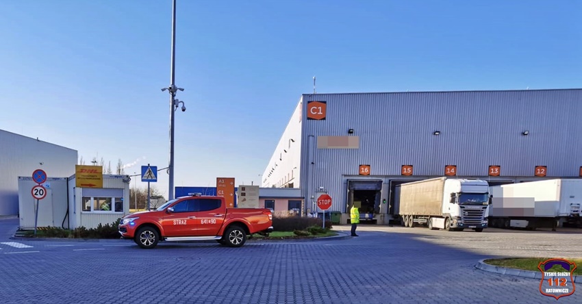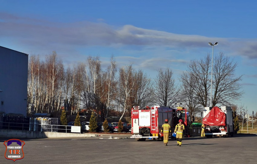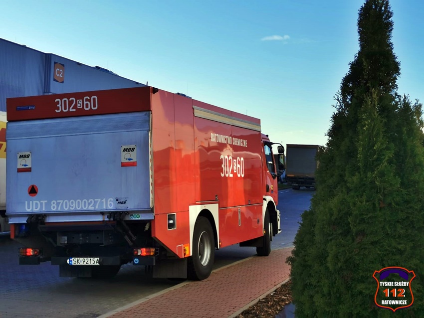 3 grudnia po godzinie 12:30 dyżurny SK KM PSP Tychy otrzymał zgłoszenie o rozszczelnieniu pojemnika z nieznaną substancją na terminalu przeładunkowym przy ul. Turyńskiej 80. Na miejsce natychmiast zadysponowane zostały cztery zastępy straży pożarnej (GBA, GCBARt, SCRT, SLRr). Po dotarciu na miejsce i rozpoznaniu stwierdzono, że pakunek z pojemnikiem znajduje się na zewnątrz obiektu a pracownicy przekazali o dochodzącym z niego gryzącym zapachu. Uzyskano również informację, że pojemnik oznakowany jest numerem UN 1992. Podjęto decyzję o wyznaczeniu strefy zagrożenia i ewakuowaniu znajdujących się w niej 26 pracowników. Następnie ratownicy w ubraniach ochrony chemicznej przeprowadzili szczegółowe rozpoznanie opakowań. Potwierdzono oznakowanie, nie stwierdzono natomiast wycieków, a pojemniki są szczelnie zamknięte. Nie stwierdzono również obecności w atmosferze gazów i par substancji niebezpiecznych. Na miejsce przybyła grupa chemiczna z JRG 2 Katowice Piotrowice (GBA, SLRChem, SCRChem, SCRt, SLRChem), która przeprowadziła dodatkowe rozpoznanie spektrometrem potwierdzając brak zagrożenia od substancji niebezpiecznych. Po skonfrontowaniu wyników pomiarów, dokumentów przewozowych oraz kart charakterystyki ustalono, że pojemniki zawierają składnik do produkcji innych substancji i w zastanej formie nie stanowi on zagrożenia dla ludzi i środowiska, natomiast specyficzny zapach pochodził z pozostałości substancji znajdującej się na opakowaniu. Na miejscu była również obecna grupa operacyjna KW PSP Katowice (SLRr). Po godzinie 15 działania na miejscu zostały zakończone.