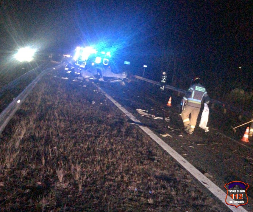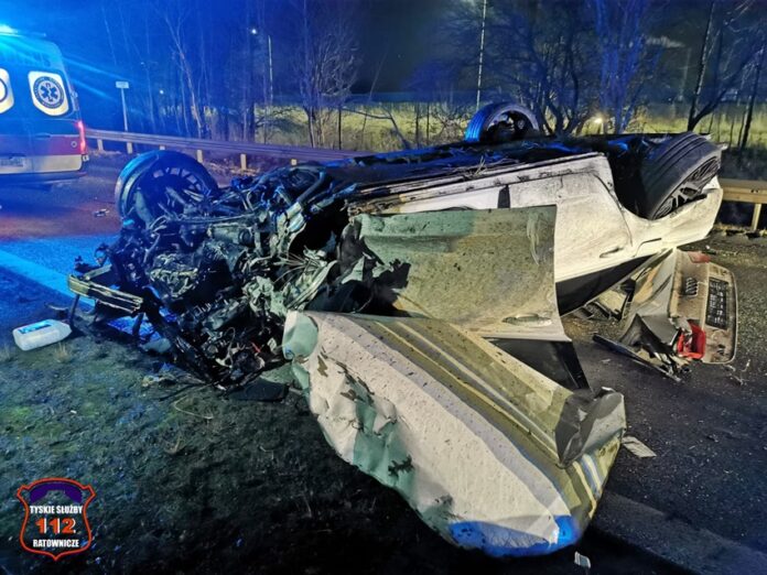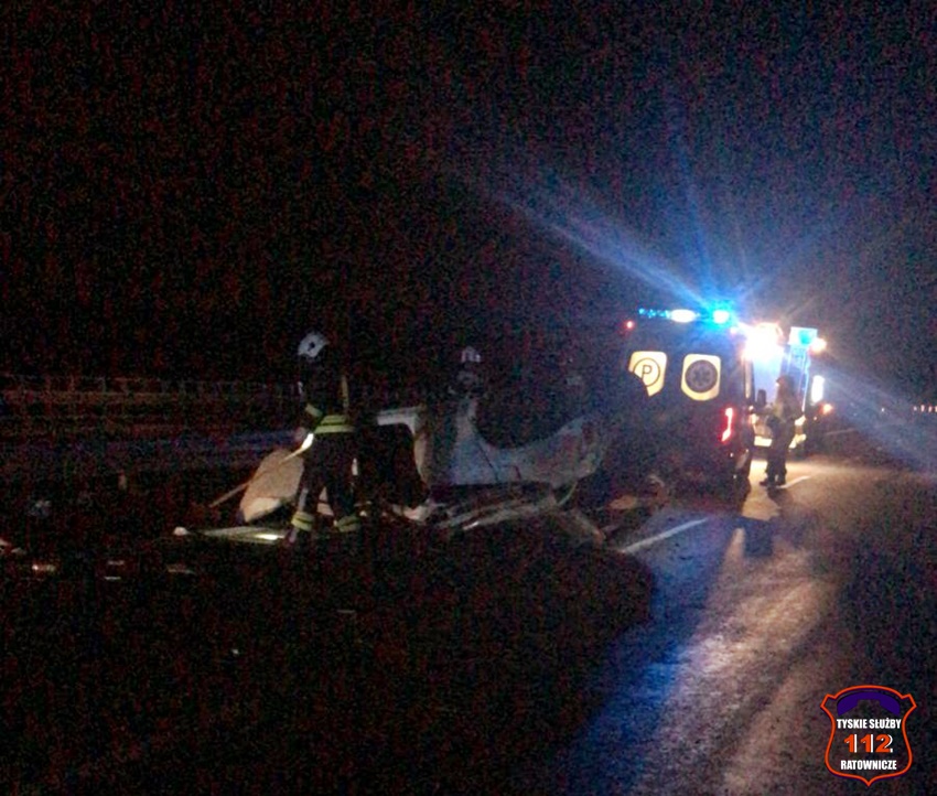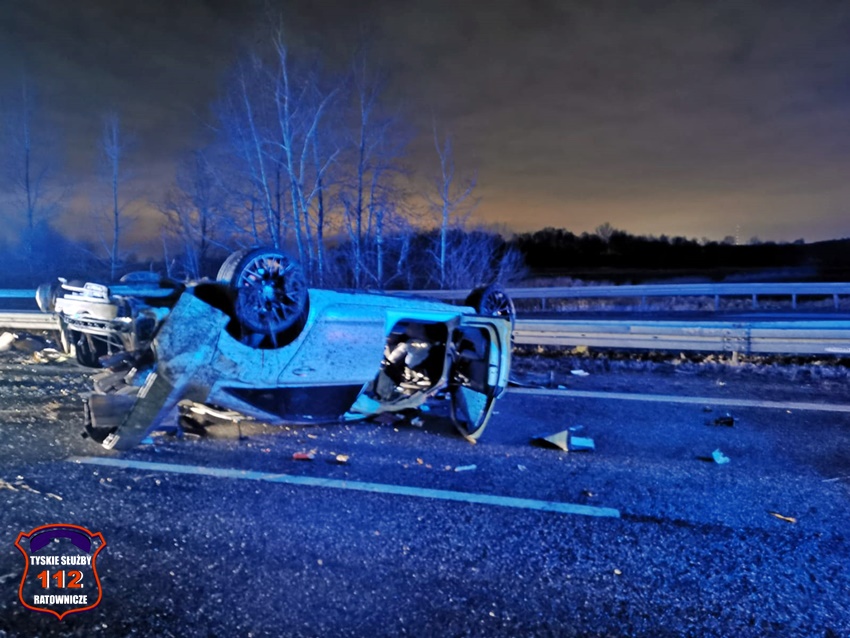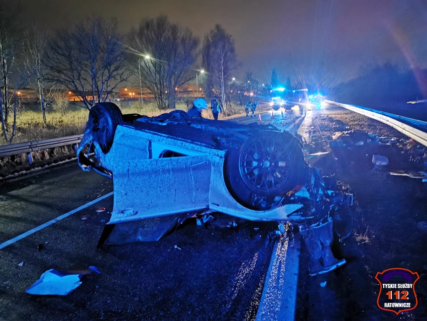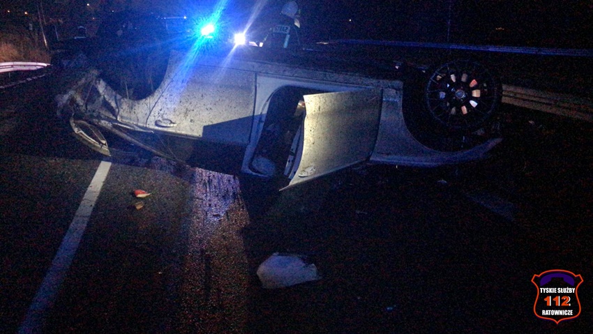 30 grudnia około godziny 18:30 dyżurny SK KM PSP Tychy otrzymał zgłoszenie o dachowani samochodu osobowgeo na ul. Turyńskiej (Dk 44) w Bieruniu. Ze zgłoszenia wynikało, że do zdarzenia doszło przed zjazdem na ul. Lędzińską na pasie w kierunku Oświęcimia, a w rozbitym pojeździe ma być zakleszczona osoba. Na miejsce natychmiast zadysponowane zostały: ZRM, zastępy OSP Bieruń Stary, KM PSP/JRG Tychy oraz Policja. Na czas działań ratunkowych ruch został całkowicie zablokowany, a następnie ruch odbywał się tylko jednym pasem. Kierowca Audi trafił pod dopiekę ratowników medycznych, a następnie został przetransportowany do szpitala. Ze wstępnych ustaleń pracujących na miejscu Policjantów wynika, że przyczyną zdarzenia było niedostosowanie prędkości do warunków panujących na drodze. Policjanci KPP Bieruń prowadzą dalsze postępowanie w sprawie tego zdarzenia.