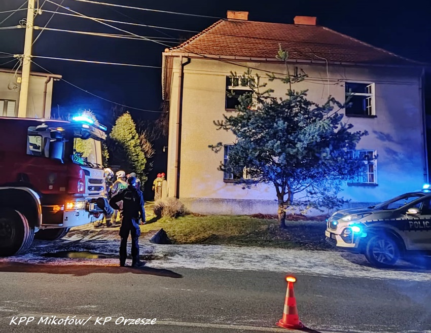 6 stycznia po godzinie 19 dyżurny SK KP PSP Mikołów otrzymał zgłoszenie o pożarze piwnicy domu jednorodzinnego przy ul. Rybnickiej w Orzeszu. Na miejsce natychmiast zadysponowane zostały zastępy OSP Orzesz, KP PSP/JRG Mikołów, ZRM oraz patrol Policji z komisariatu w Orzeszu. Po dotarciu na miejsce zgłoszenie zostało potwierdzone. Podczas działań gaśniczych w piwnicy budynku strażacy natrafili na zwęglone ludzkie zwłoki. Okazało się, że to zwłoki 69 – letniego mieszkańca budynku. Poza nim w budynku były jeszcze dwie kobiety: 63 letnia (żona denata) oraz 88 letnia (teściowa). Obie kobiety zostały przetransportowane do szpitala na dokładną diagnostykę. W dniu jutrzejszym odbędzie się wizja lokalna w budynku z udziałem biegłego z zakresu pożarnictwa mająca na celu wyjaśnienie przyczyn i okoliczności tego tragicznego w skutkach pożaru. Do tego czasu teren nadzorowany będzie przez orzeskich Policjantów.