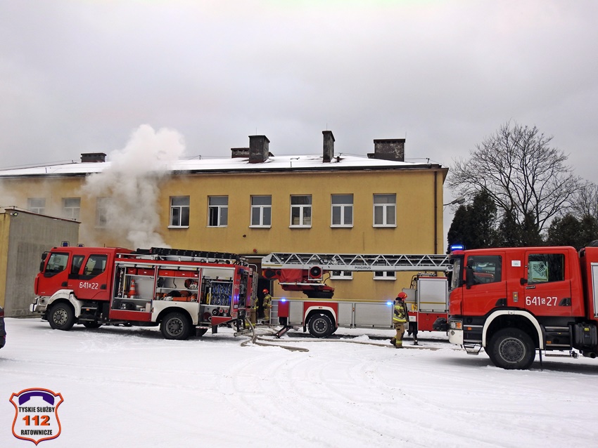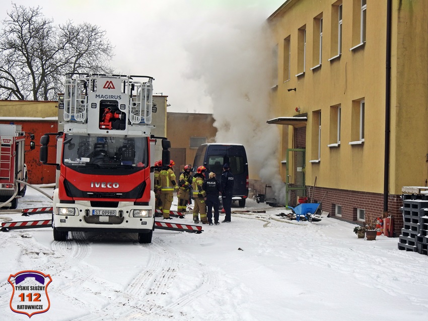 21 stycznia około godziny 10:40 dyżurny SK KM PSP Tychy otrzymał zgłoszenie o pożarze w pomieszczeniach piwnicznych budynku byłej Centralnej Stacji Ratownictwa Górniczego przy ul. Mikołowskiej 28. Obecnie w budynku znajduje się hurtownia (magazyn) kwiatów sztucznych. Na miejsce zgłoszenia zadysponowane zostały zastępy KM PSP/JRG Tychy oraz patrol Policji. Po przybyciu na miejsce zgłoszenie zostało potwierdzone. Strażacy w aparatach ochrony układu oddechowego weszli do budynku. Pożar został zlokalizowany w pomieszczeniach kotłowni. Podany został prąd wody w natarciu, a jednocześnie przystąpiono do oddymiania obiektu. Budynek po ugaszeniu pożaru został dokładnie oddymiony i sprawdzony na obecność tlenku węgla. Po godzinie 13 działania na miejscu zostały zakończone. Trwa ustalanie przyczyn i okoliczności tego pożaru.