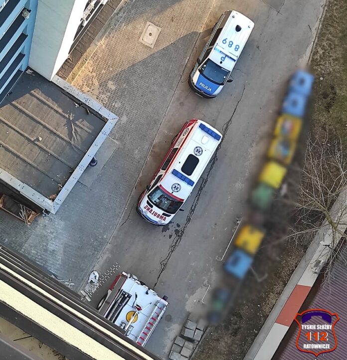14 lutego około godziny 16 dyżurny SK KM PSP Tychy otrzymał zgłoszenie o możliwym zatruciu tlenkiem węgla w jednym z mieszkań w budynki wielorodzinnym przy al. Jana Pawła II. Na miejsce natychmiast zadysponowany został zastęp KM PSP/JRG Tychy, ZRM oraz patrol Policji. Po dotarciu na miejsce strażacy wykonali pomiary stężenia tlenku węgla w mieszkaniu, wynik ok 200ppm. We wskazanym mieszkaniu znajdowały się dwie osoby – kobieta i mężczyzna. Mężczyzna z objawami zatrucia tlenkiem węgla został przetransportowany do szpitala. Kobieta po przebadaniu pozostała na miejscu. Na miejsce wezwany został przedstawiciel administratora budynku.