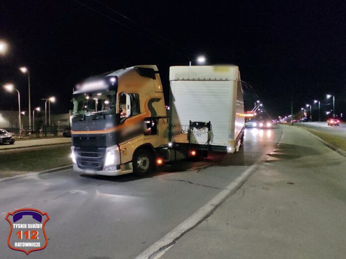 1 marca około godziny 19 na ul. Towarowej w rejonie skrzyżowania z ul. Metalową doszło do odpięcia się naczepy od ciągnika siodłowego. W wyniku tego zdarzenia ruch na ul. Towarowej w stronę ul. Serdecznej został przyblokowany. Samochody osobowe poruszały się pasem do skrętu w ul. Metalową, a pojazdy komunikacji miejskiej musiały oczekiwać na usunięcie naczepy. Na miejsce zdarzenia wezwany został patrol Policji. Kierowca ciągnika siodłowego po około czterdziestu minutach uporał się z problemem, a następnie droga została całkowicie udrożniona.