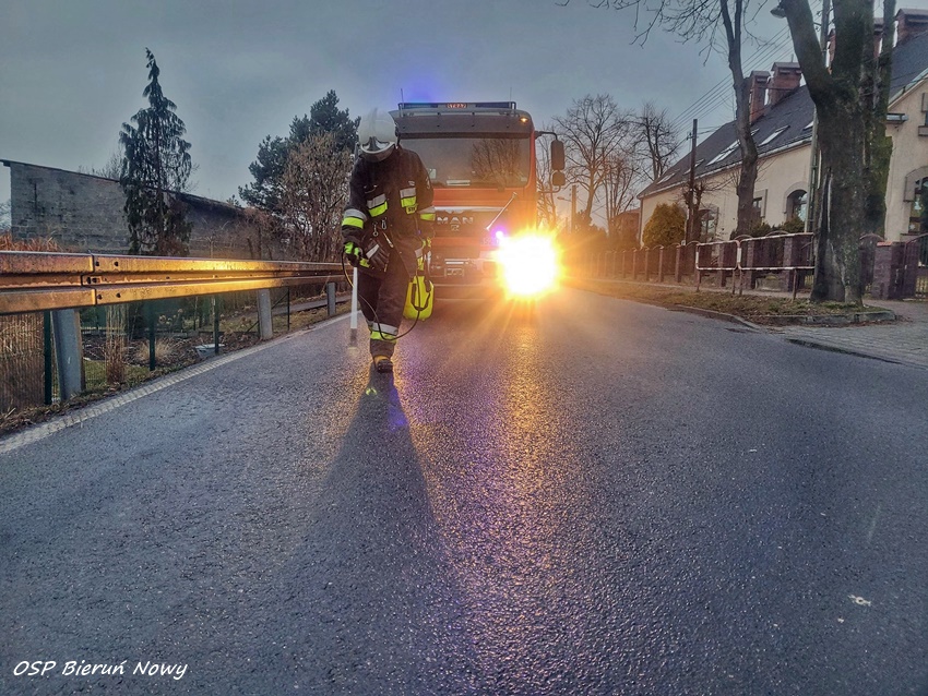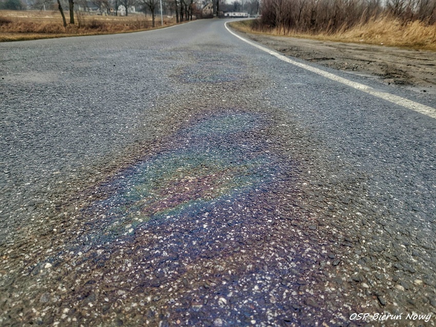 4 marca około godziny 16:45 dyżurny SK KM PSP Tychy otrzymał zgłoszenie o plamie substancji ropopochodnej na ul. Bijasowickiej w Bieruniu. Na miejsce zgłoszenia zadysponowane został zastęp strażaków OSP Bieruń Nowy oraz patrol Policji. Po dotarciu na miejsce i rozpoznaniu okazało się, że plama ciągnie się od Bierunia (ul. Władysława Jagiełły, ul. Bijasowicką, ul. Krupniczą) przez Jedlinę (ul. Skromna, ul. Wolska) oraz ul. Pszczyńską w Woli. Do działań zadysponowane zostały dodatkowe zastępy z OSP Czarnuchowice, OSP Bojszowy oraz KM PSP/JRG Tychy. Plama została zneutralizowana przy użyciu Sintanu. Działania trwały około dwóch godzin.
