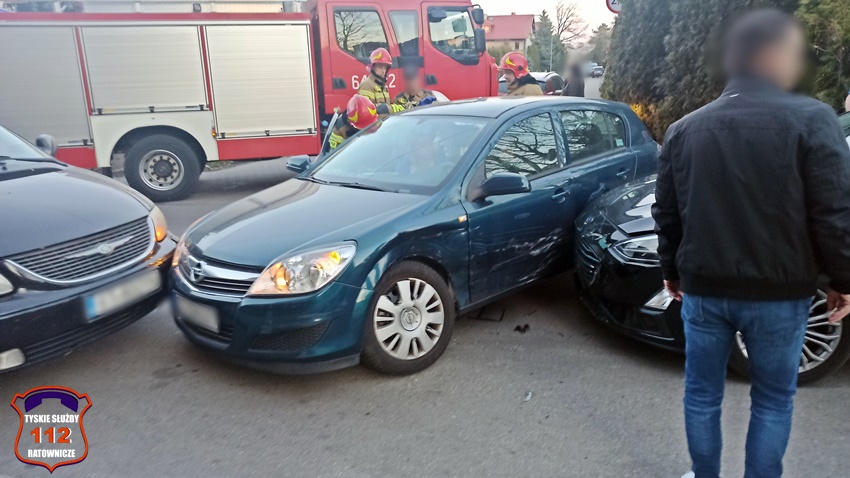 24 marca około godziny 18 na skrzyżowaniu ul. Baziowa – Balladyny doszło do zdarzenia drogowego z udziałem trzech pojazdów. Na miejsce zdarzenia wezwane zostały: ZRM, zastępy KM PSP/JRG Tychy oraz patrol Policji. Na czas działań ratunkowych ruch został całkowicie zablokowany. W zdarzeniu brały udział: Ford, Opel oraz Chrysler. Ze wstępnych ustaleń pracujących na miejscu Policjantów wynika, ze do zdarzeni doszło w momencie gdy kierująca Oplem kobieta włączała się do ruchu z ul. Balladyny w ul. Baziową. W lewy bok jej samochodu uderzył jadący ul. Baziową w kierunku ul. Starokościelnej kierowca Forda. Opel po uderzeniu przez Forda uderzył jeszcze w zaparkowanego w pobliżu Chryslera. Kobieta kierująca Oplem trafiła pod opiekę przybyłych na miejsce ratowników medycznych. Na szczęście nie doznała ona poważnych obrażeń i pozostała na miejscu zdarzenia. Utrudnienia w ruchu trwały około godziny. Policjanci KMP Tychy prowadzą dalsze postępowanie w tej sprawie.